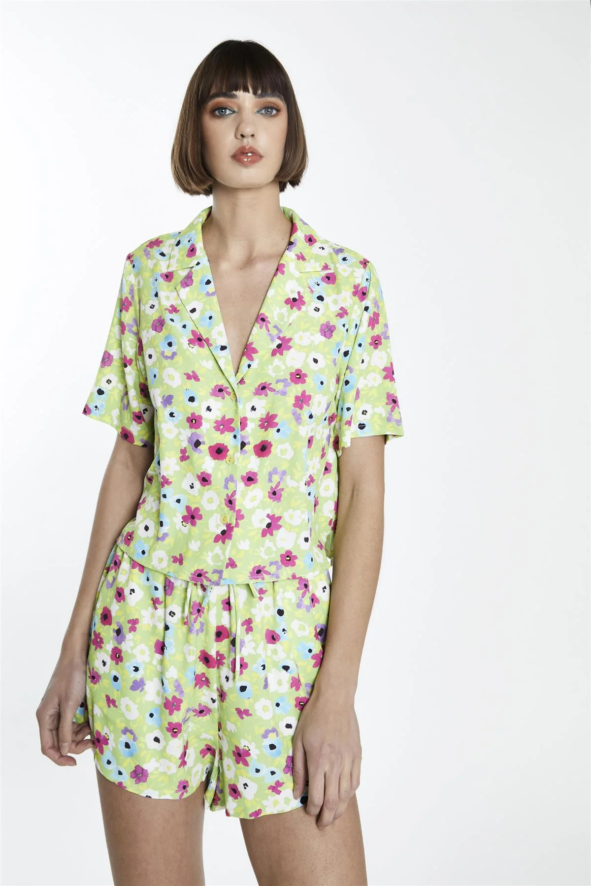 Multi Green floral Loose High-Waisted-Shorts