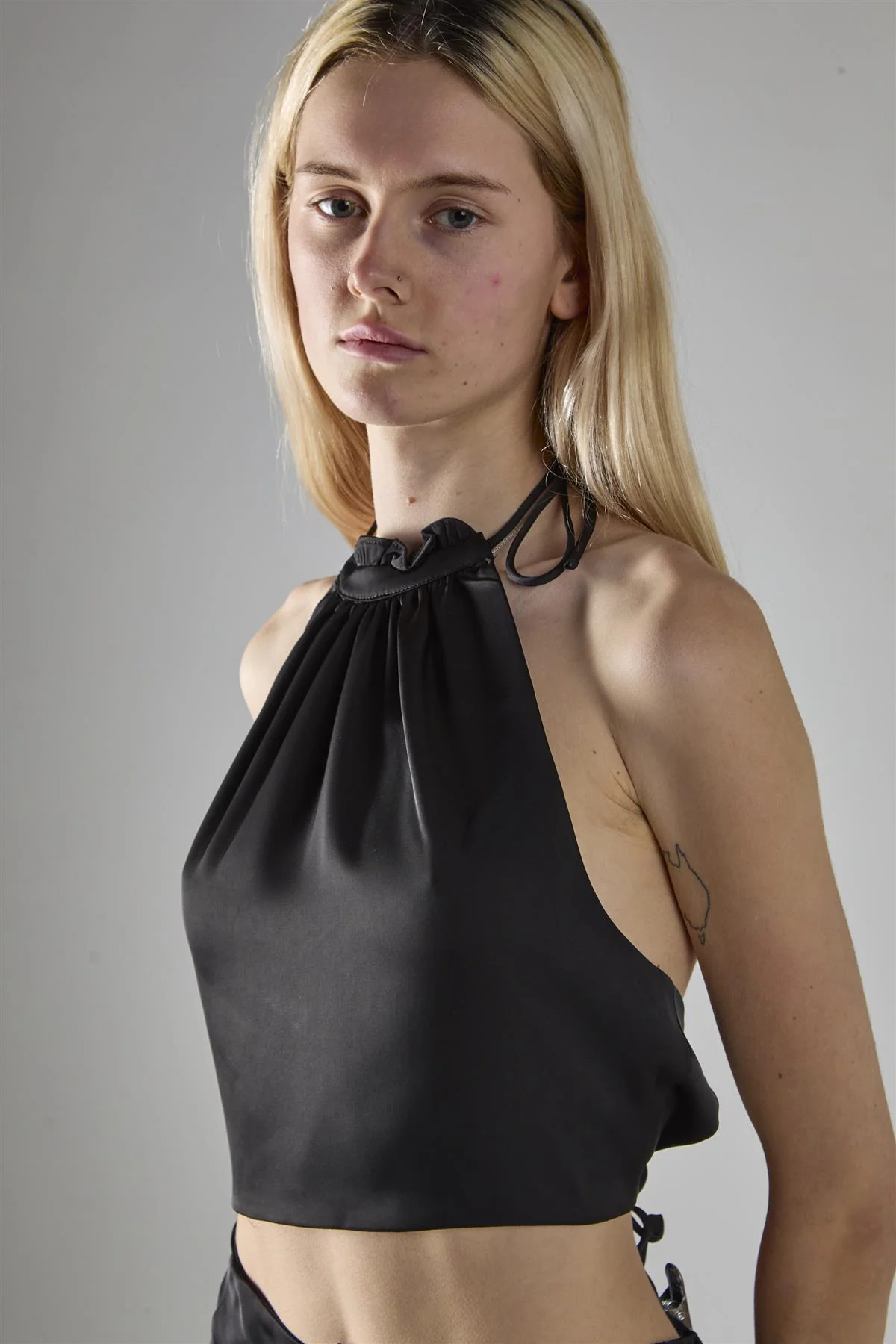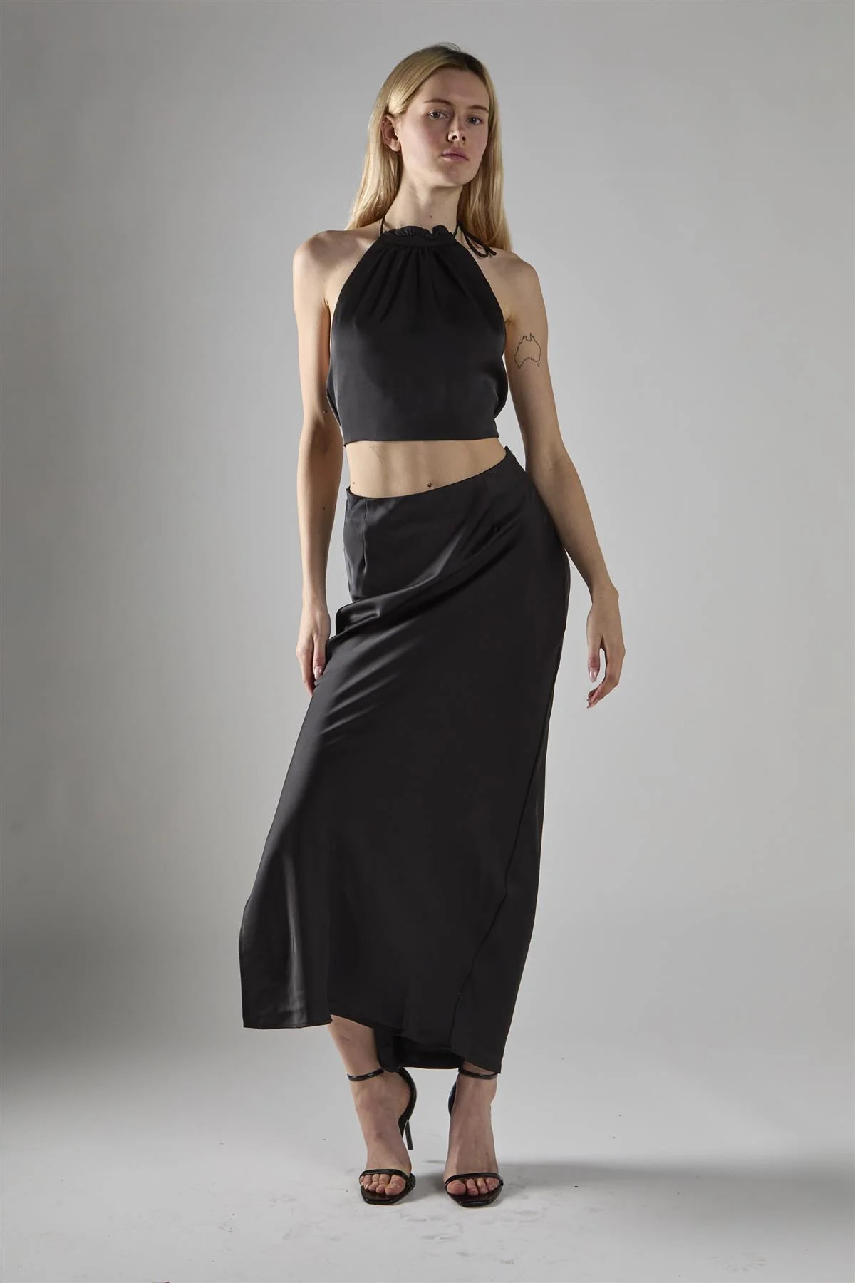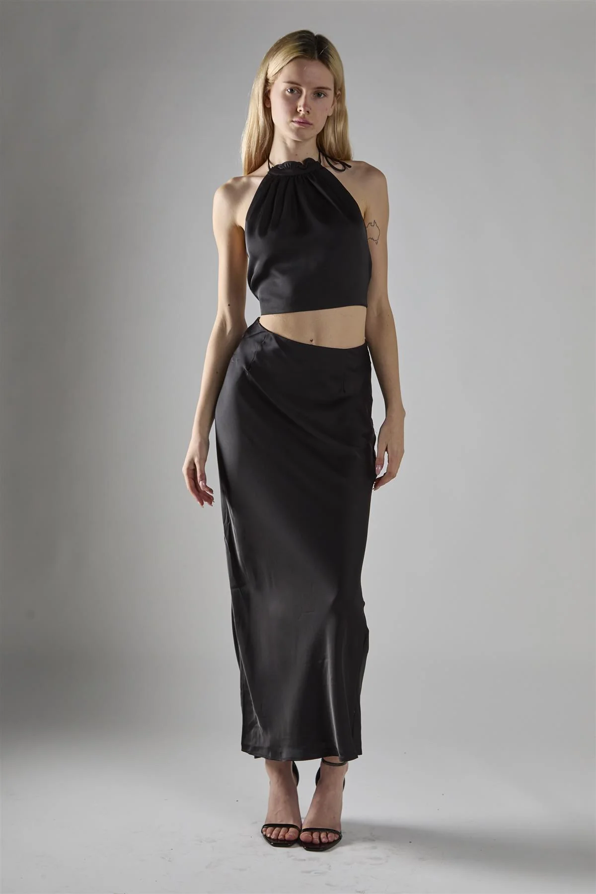 Black Satin Halter-Neck Crop-Top