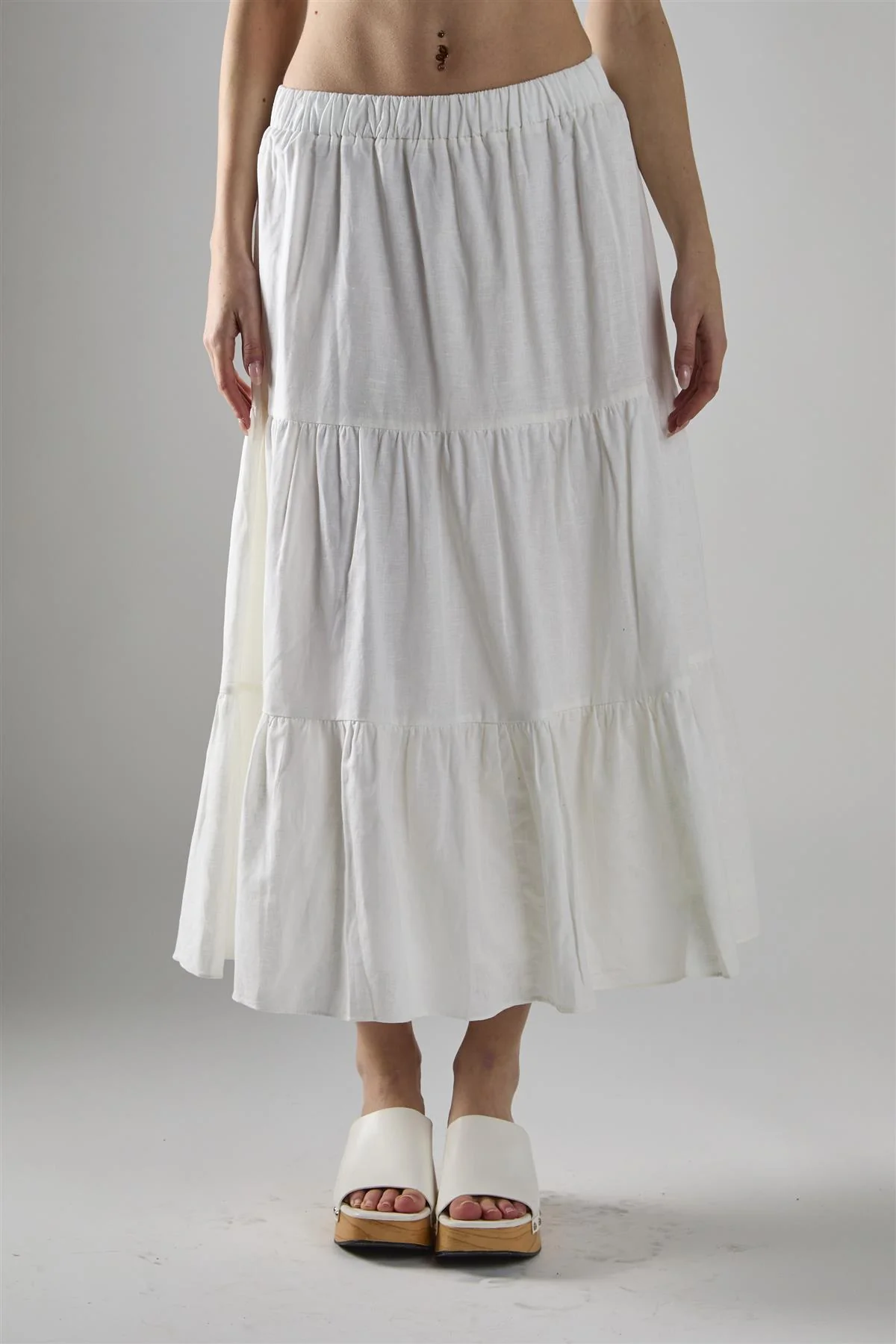White Chiffon Tiered Midaxi-Skirt