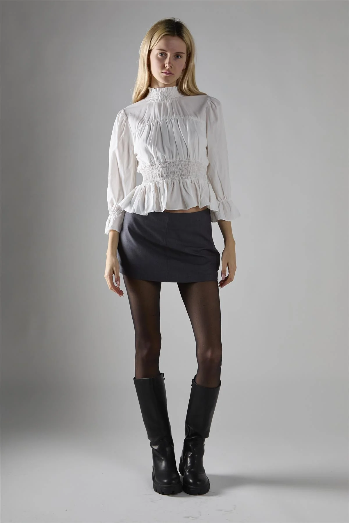 Off White High Neck Crop-Top