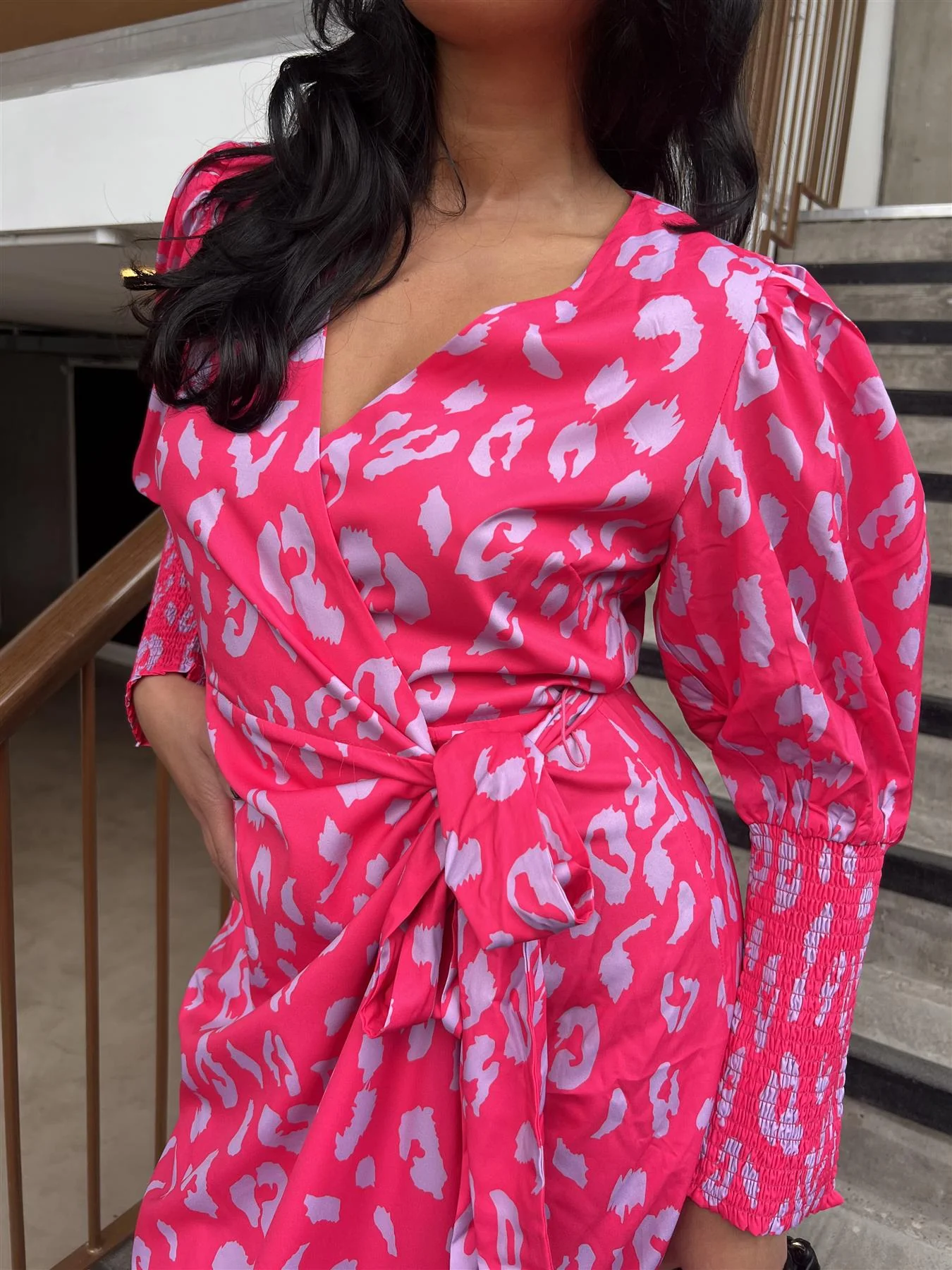 Neon Pink-Lilac Leopard Wrap-Tie Maxi-Dress