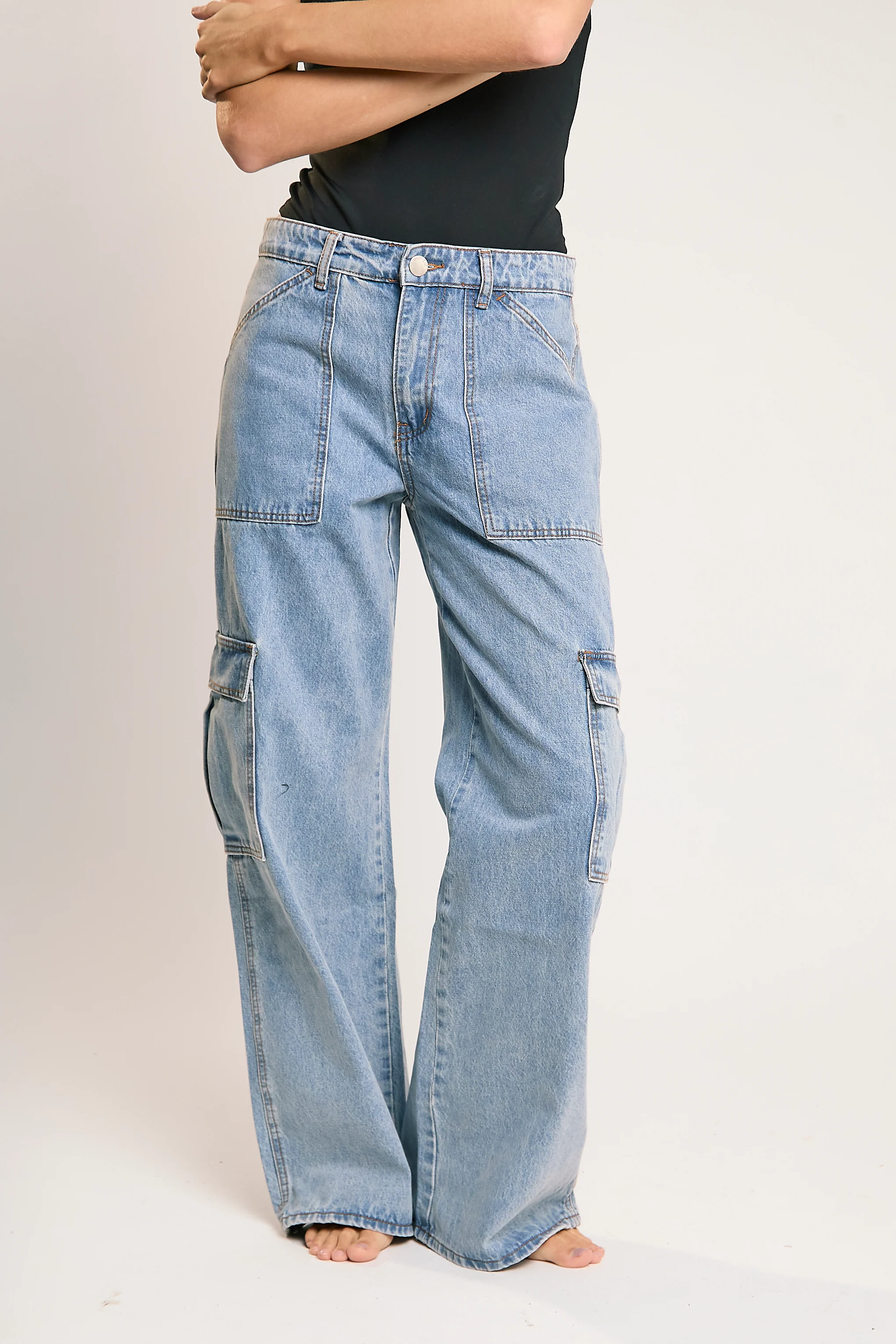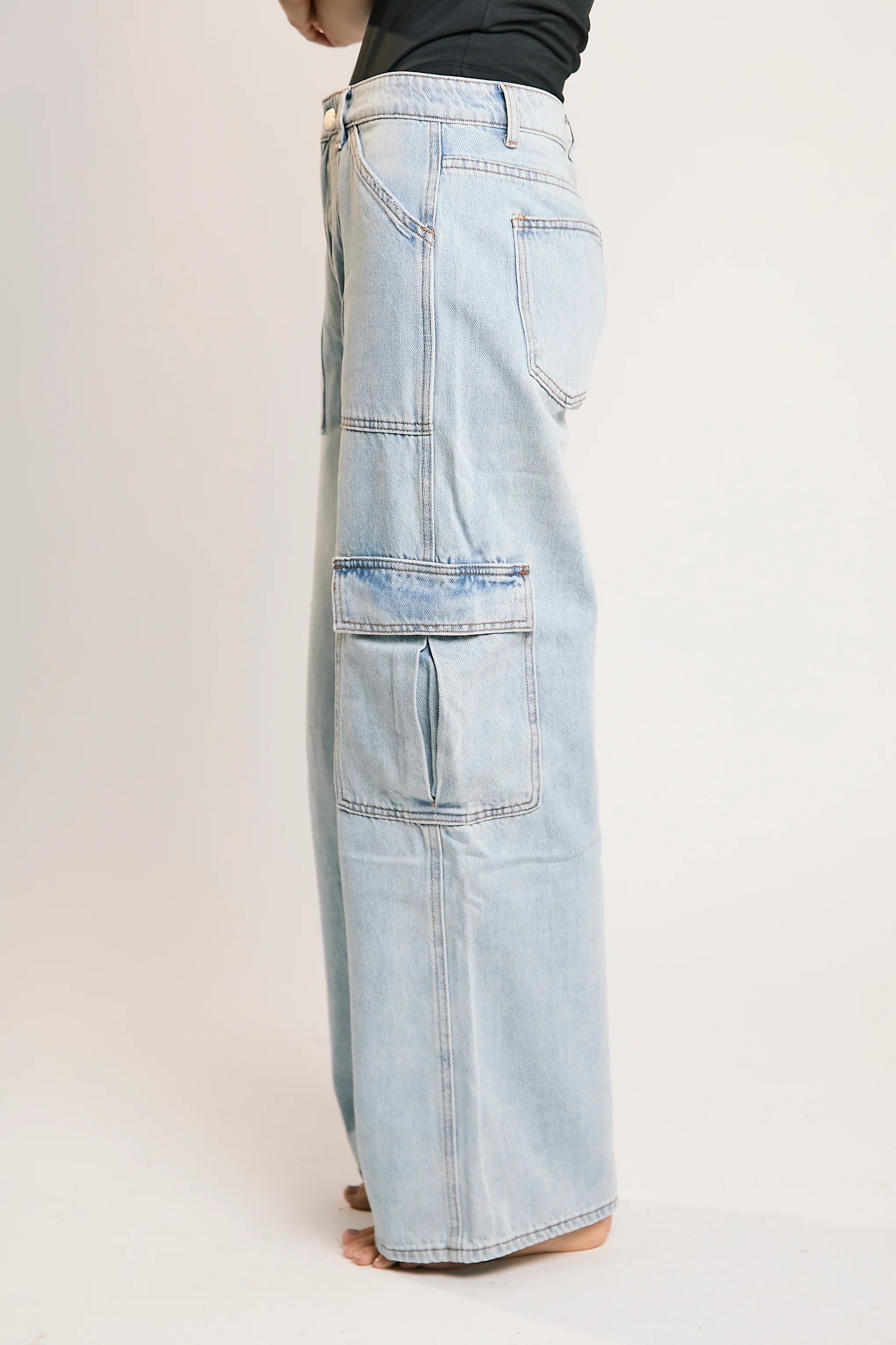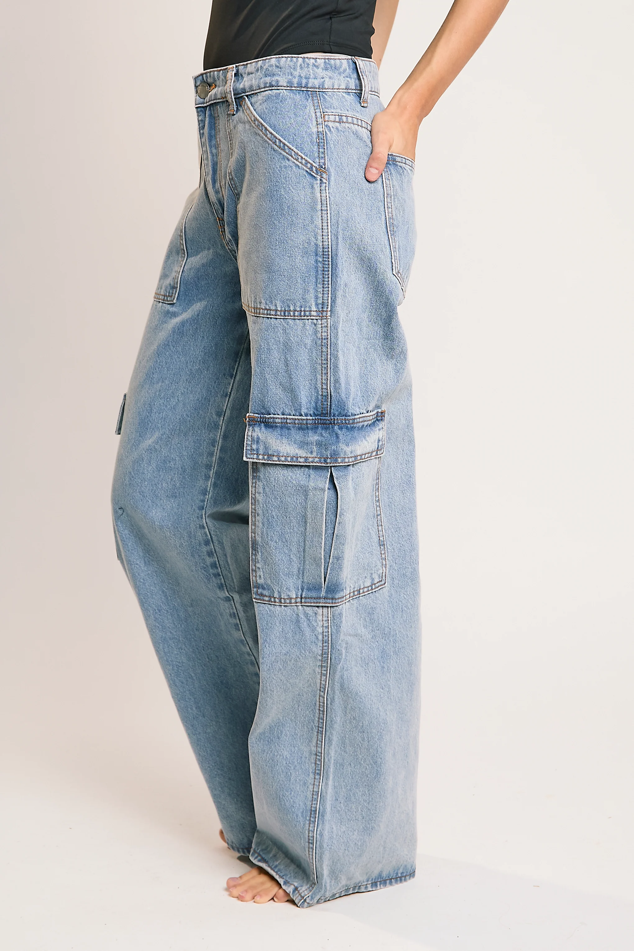 Light Stonewash Cargo Wide-Leg-Jeans