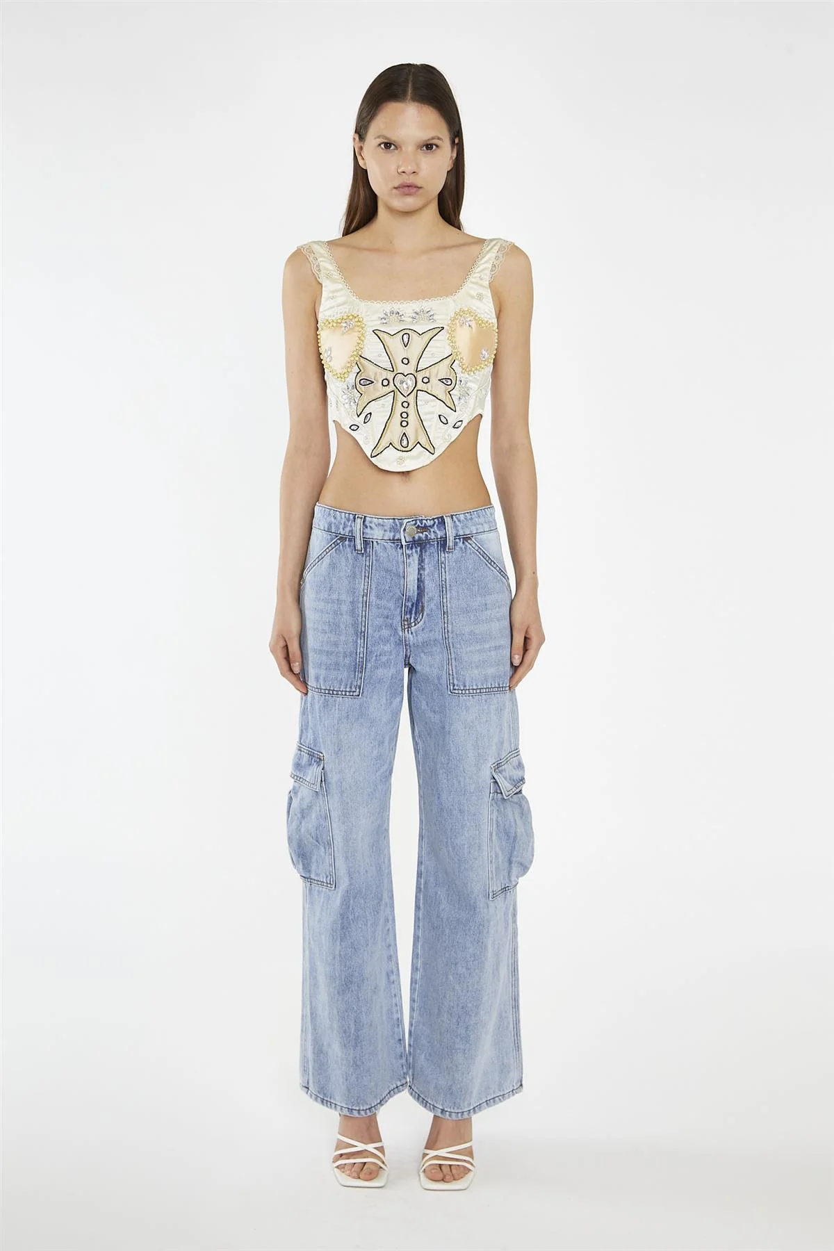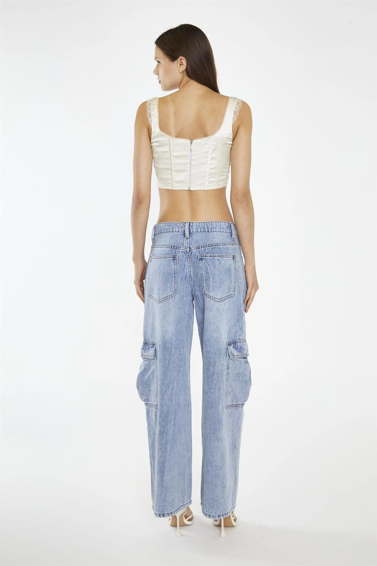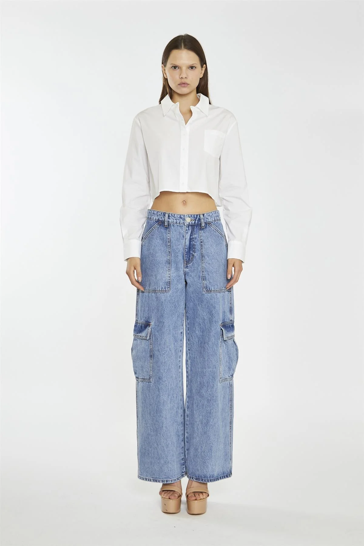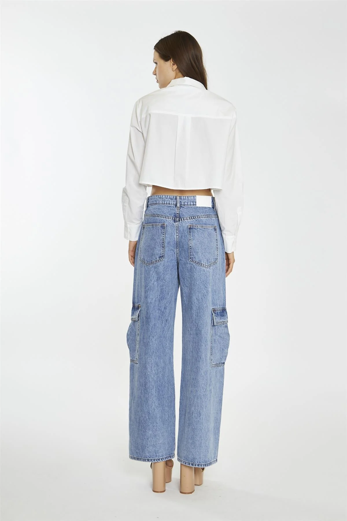 Light Stonewash Cargo Wide-Leg-Jeans