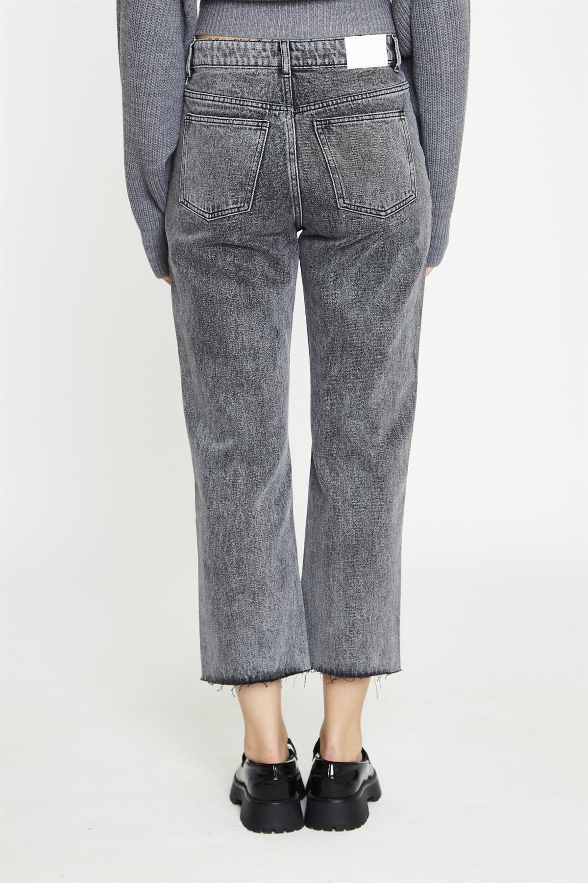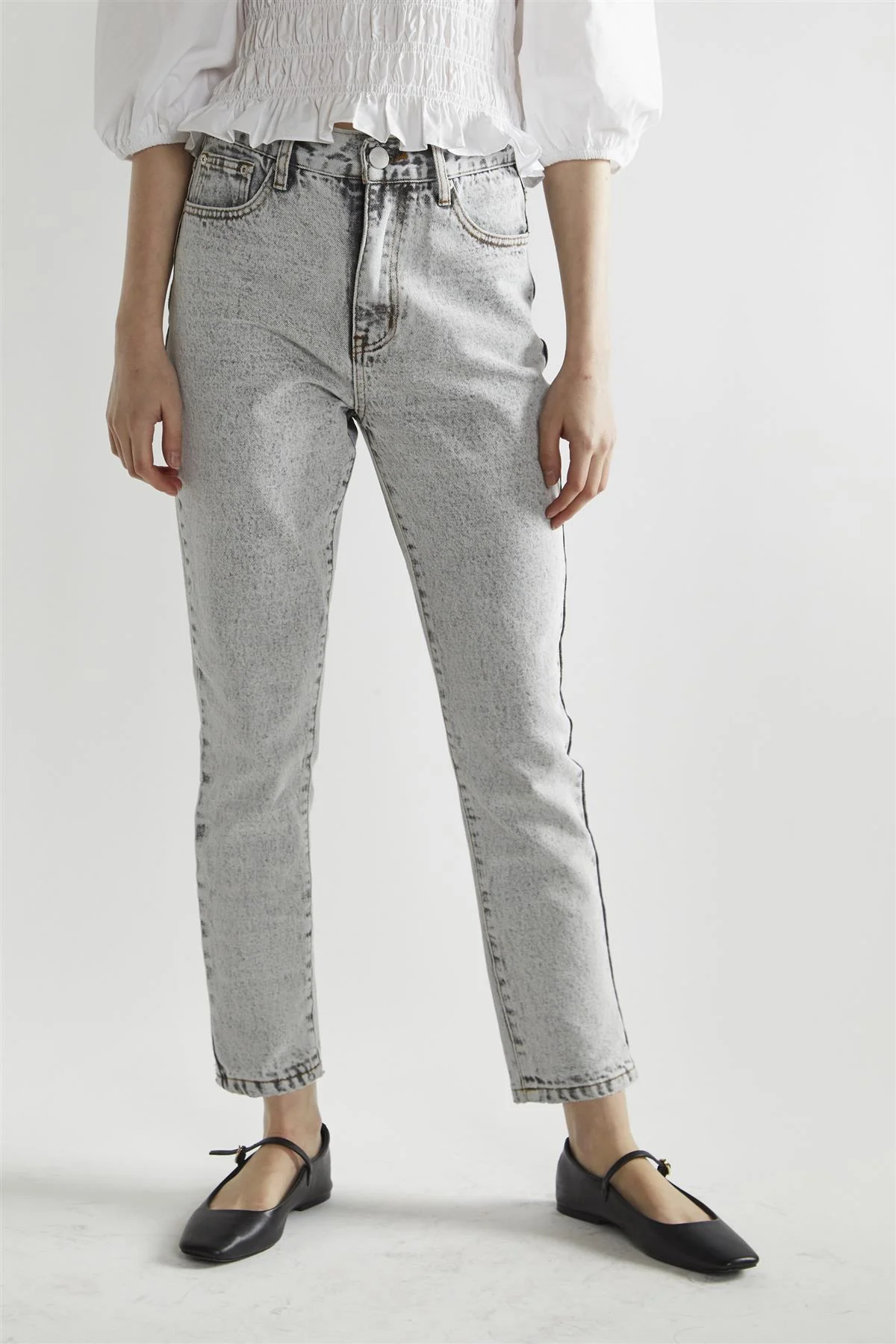 Black Acid-Wash Straight Leg Jeans