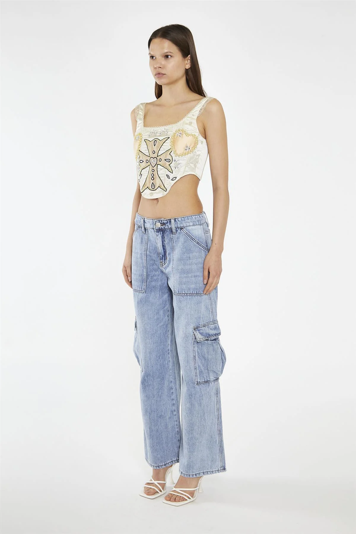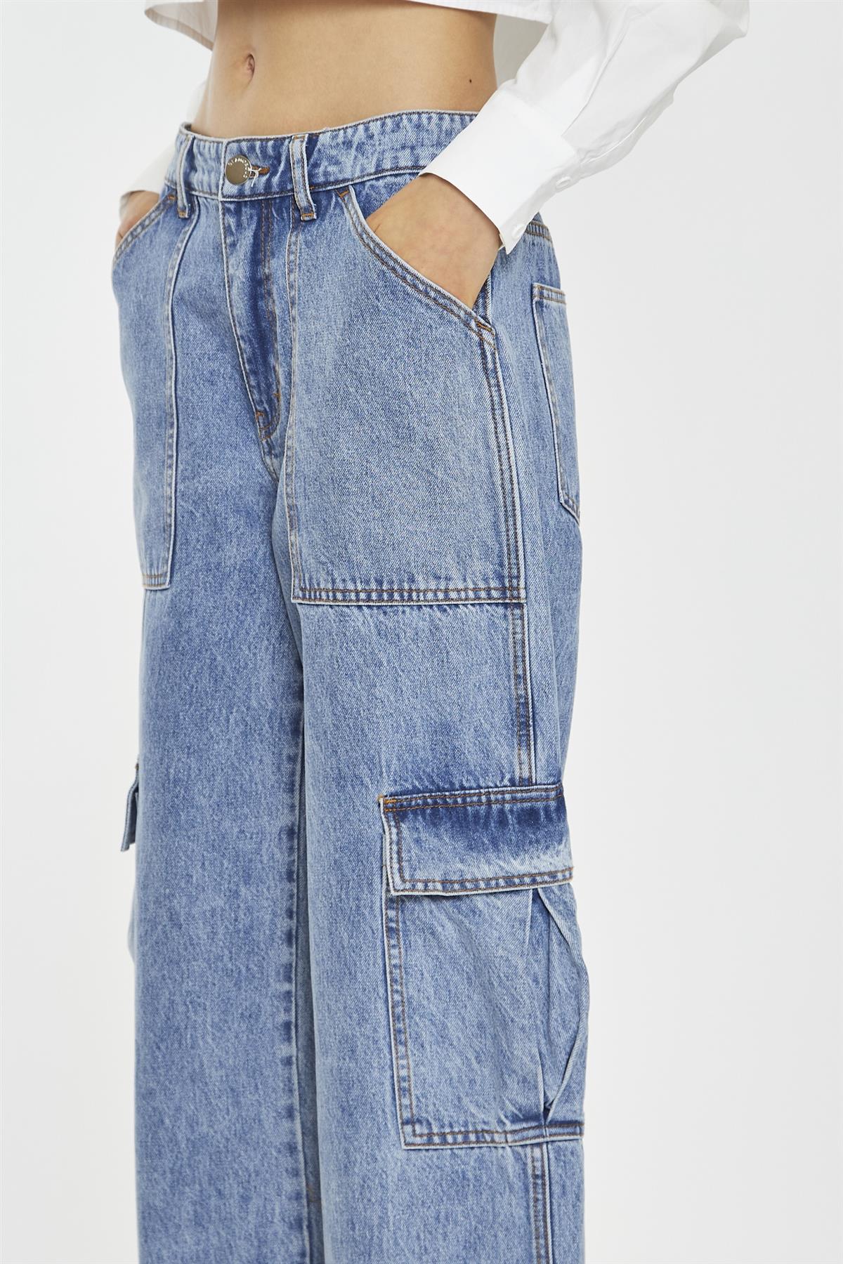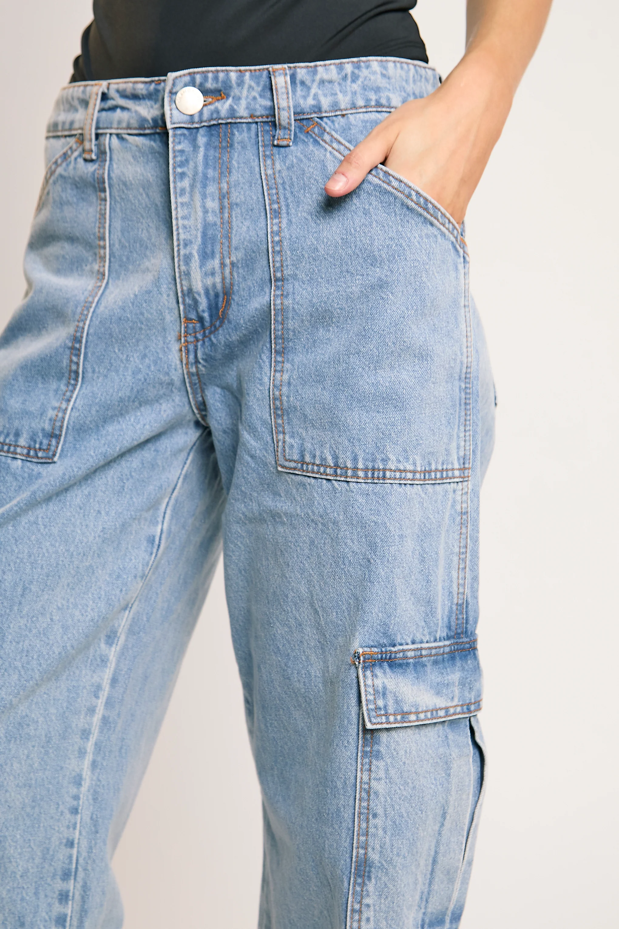 Mid Stonewash Cargo-Jeans