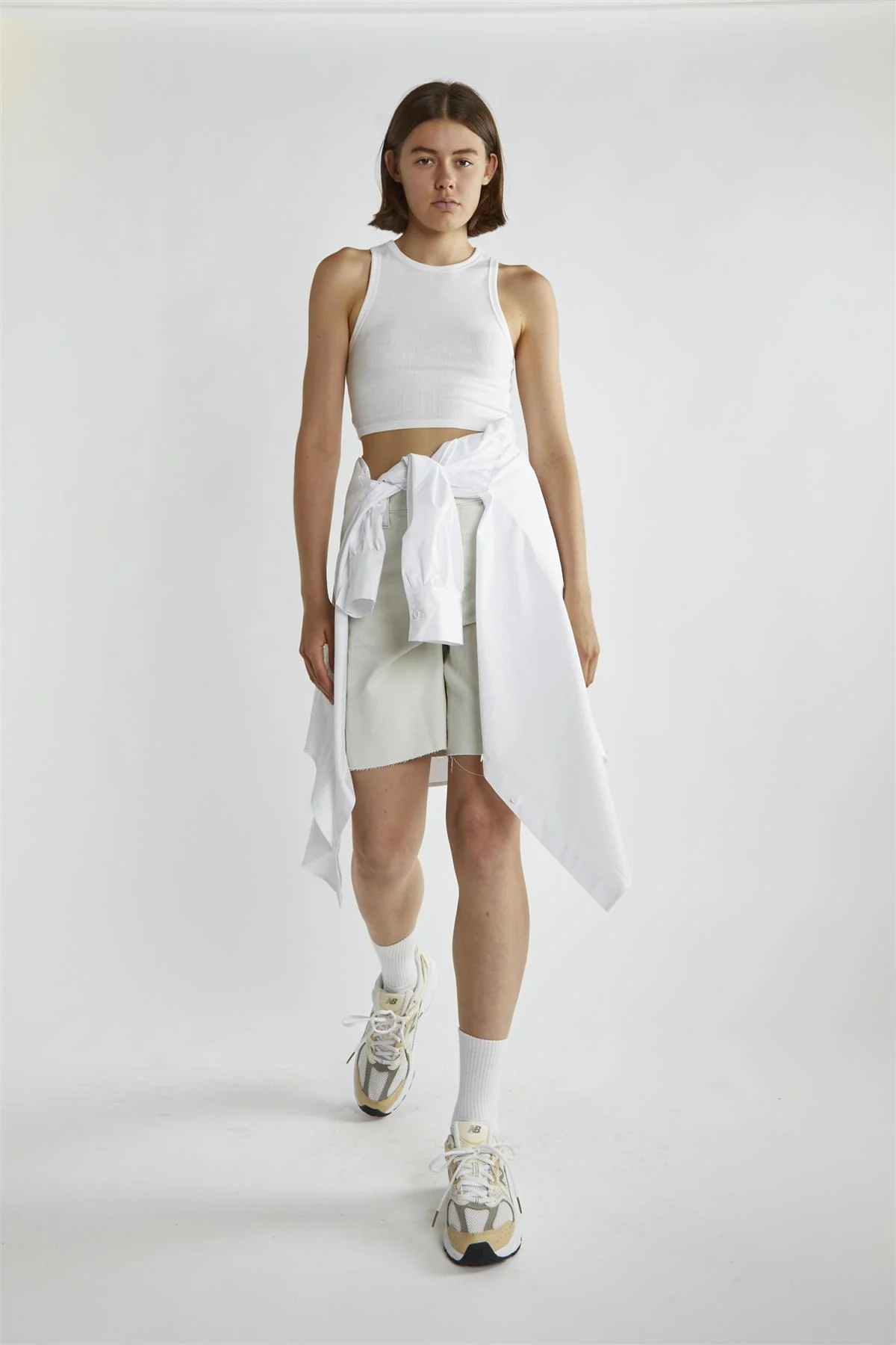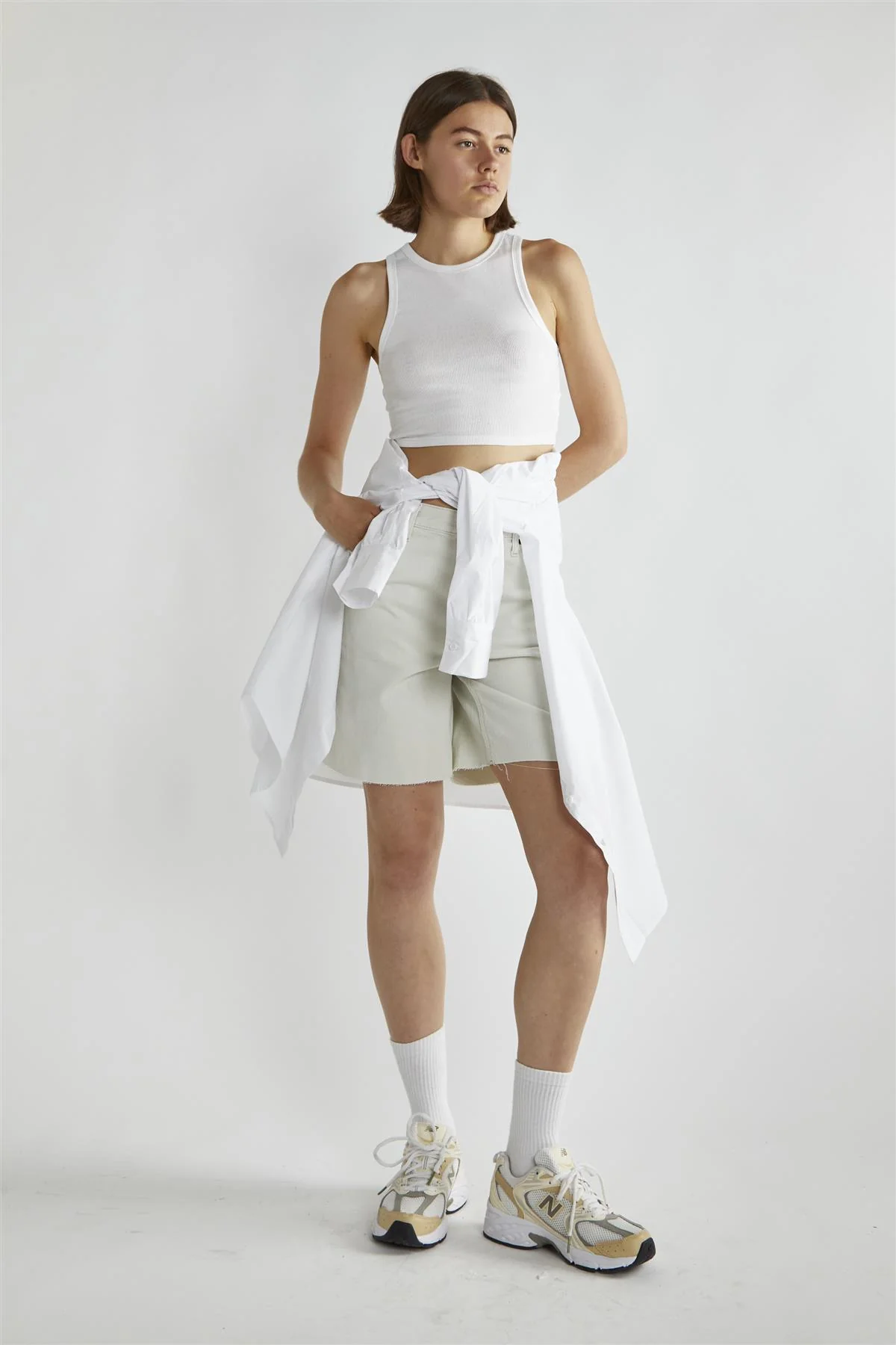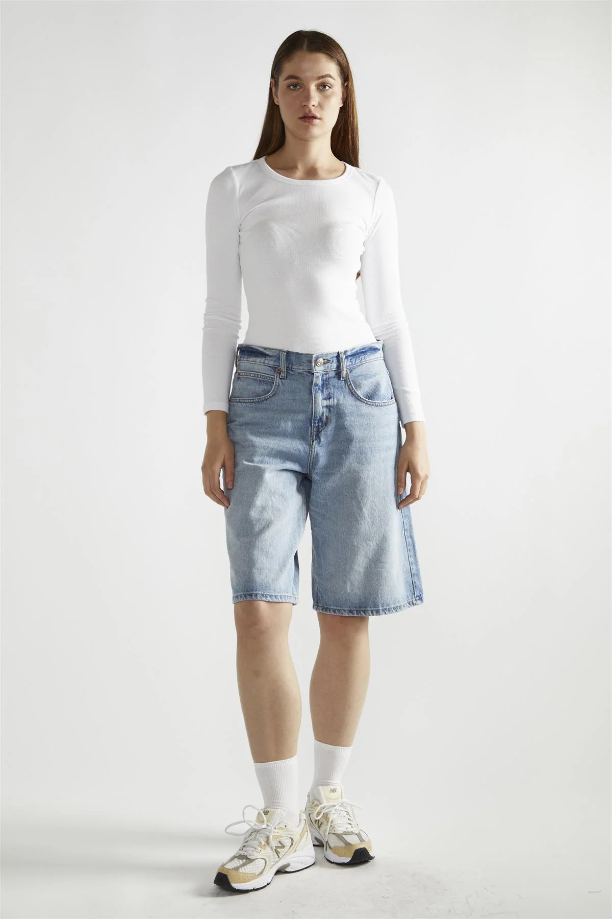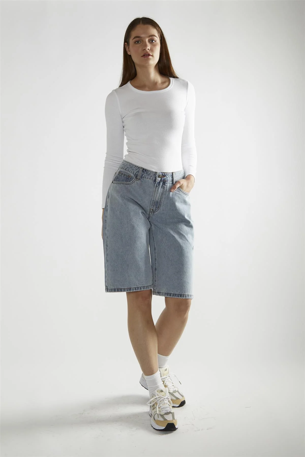 Bleach-White Denim Cut-Off Long Shorts