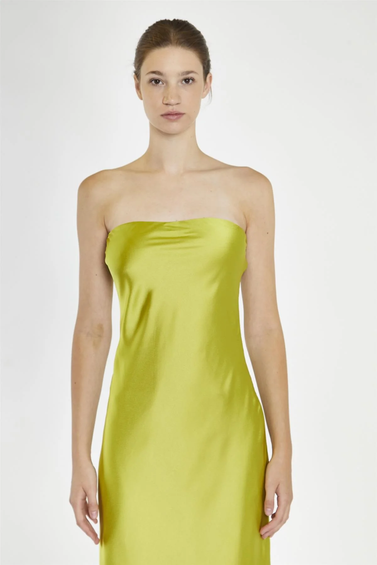 Citrus-Green Strapless Bias-Cut Midaxi-Dress
