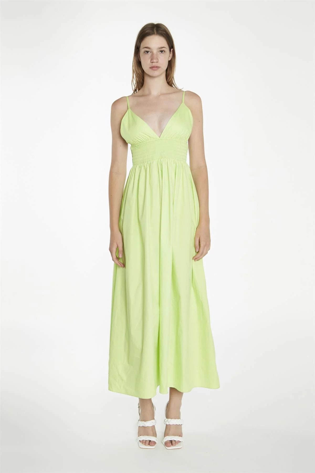 Electric-Lime Shirred Waist Maxi-Dress