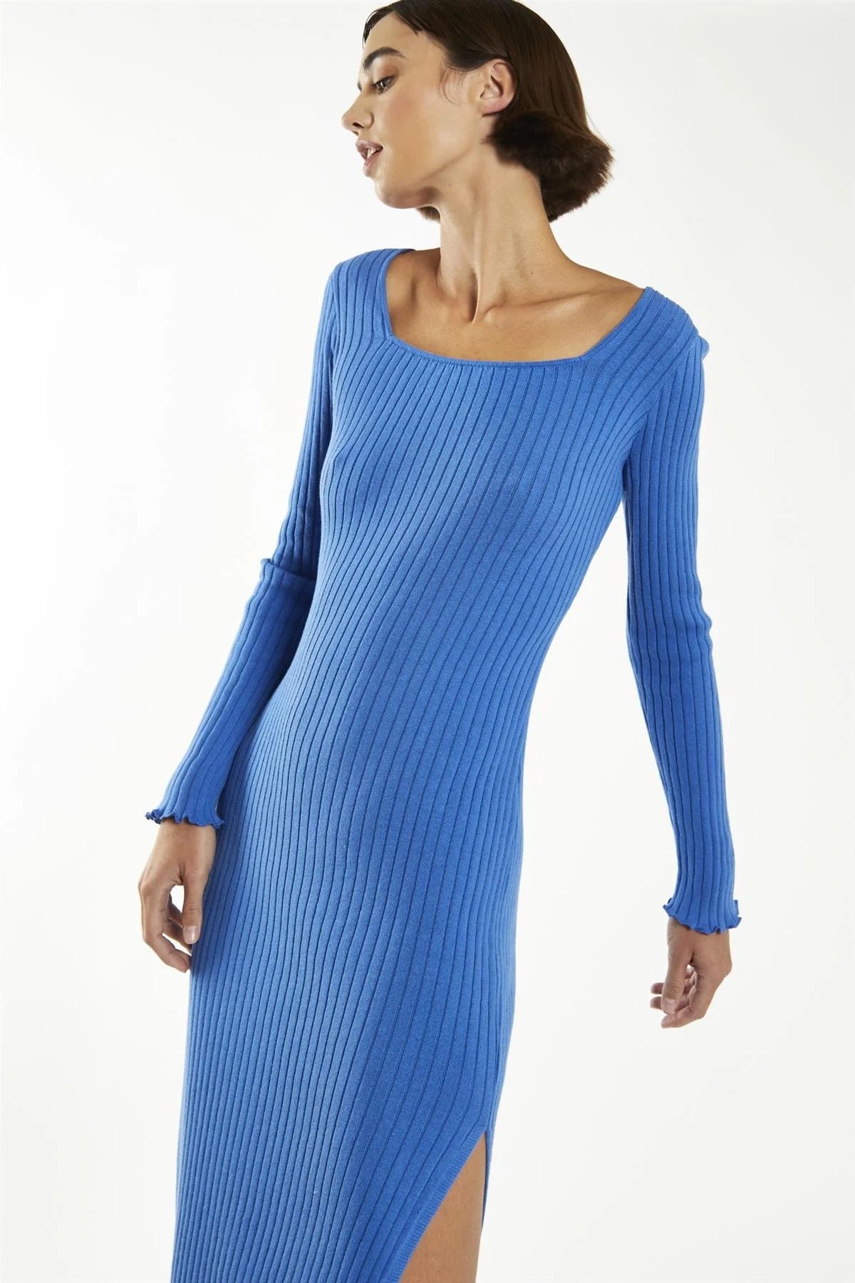Ultramarine Blue Square-Neck Knit Midi-Dress