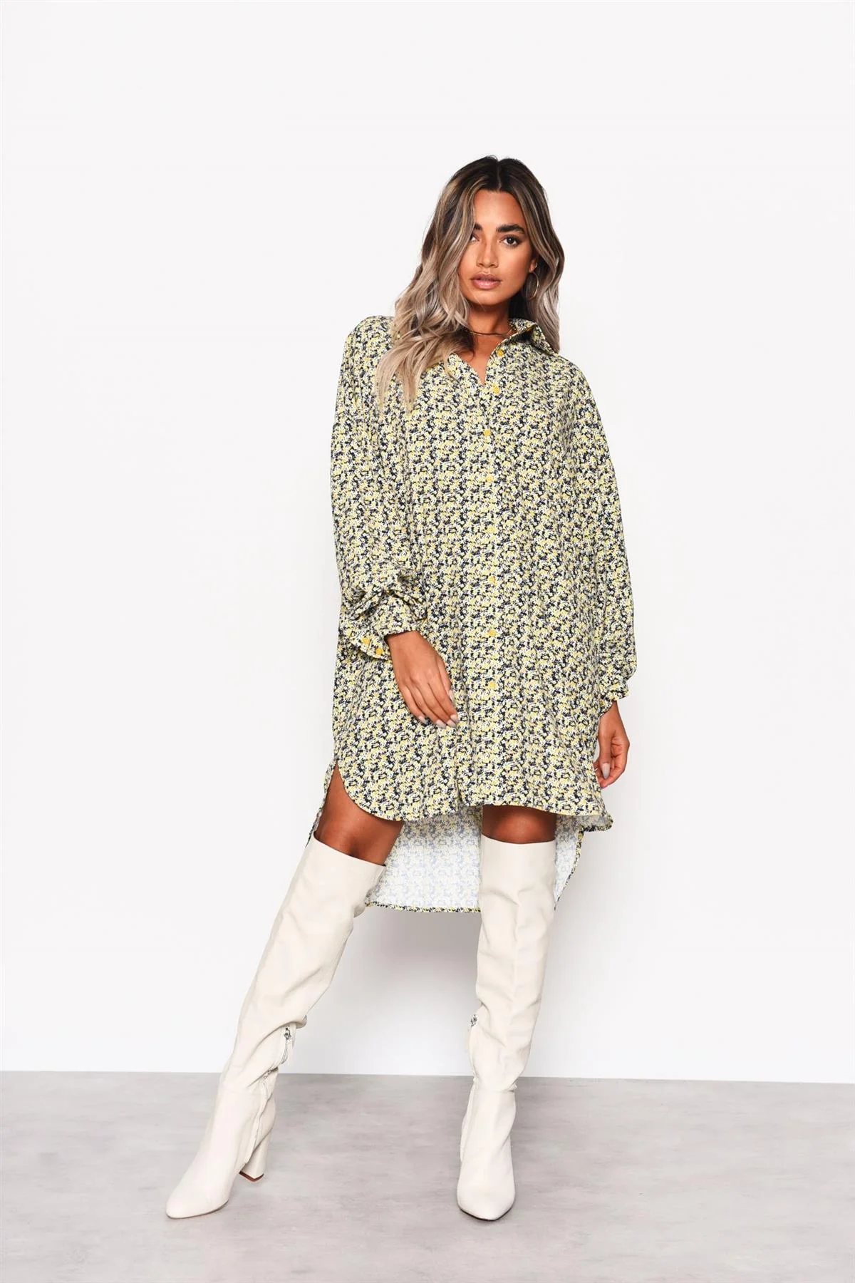 Multi Yellow-Ditsy Shirt Hi-Low-Dress