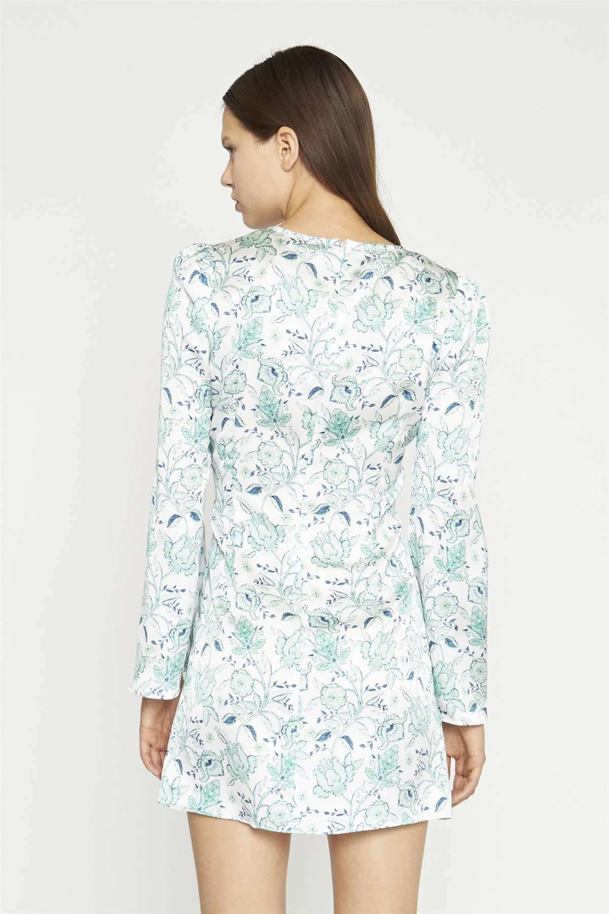 White-Mint Paisley Satin Gathered Keyhole Mini-Dress