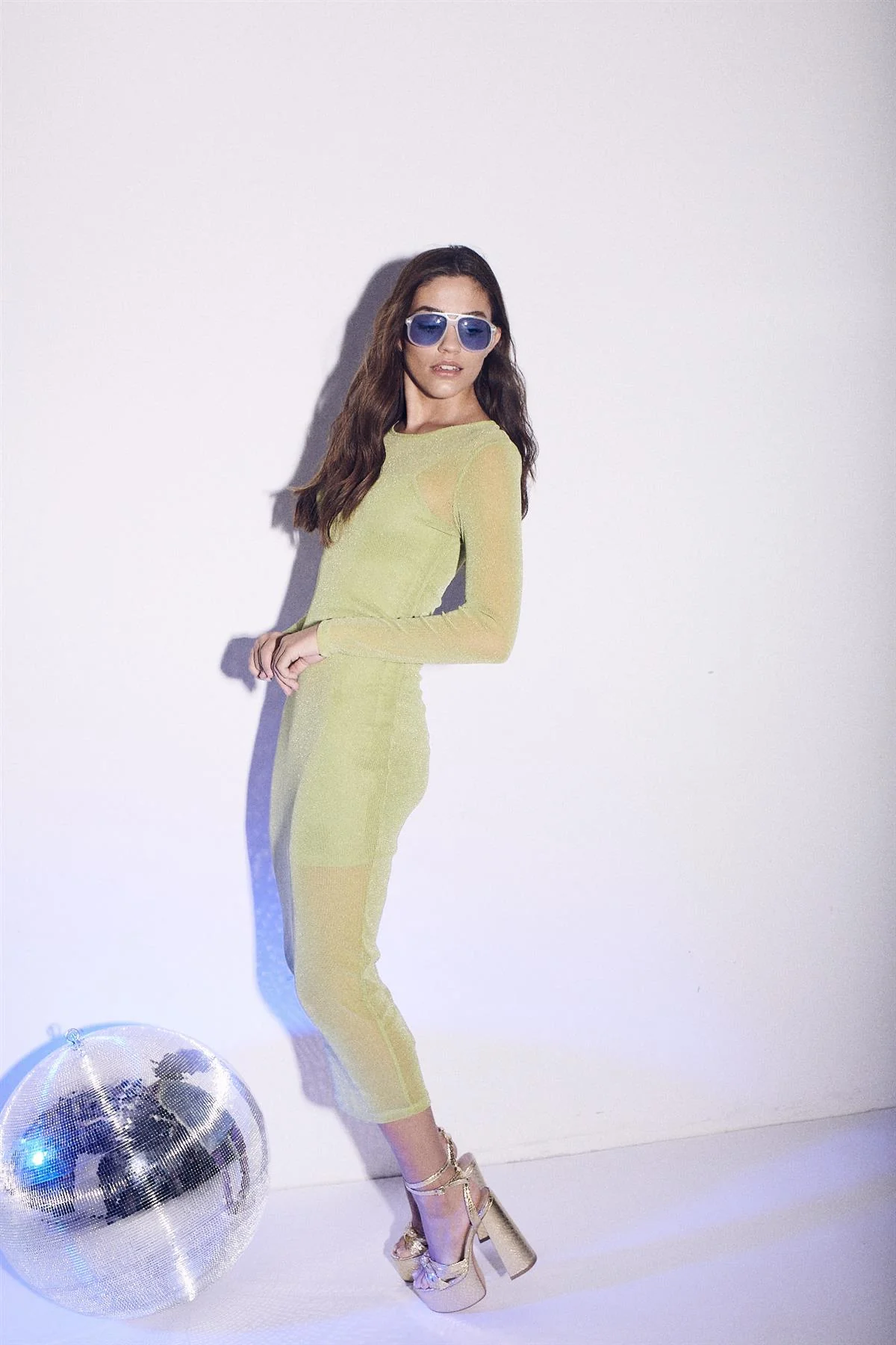 Bailee Long-Sleeve Bodycon Midaxi-Dress - Green Glitter Mesh