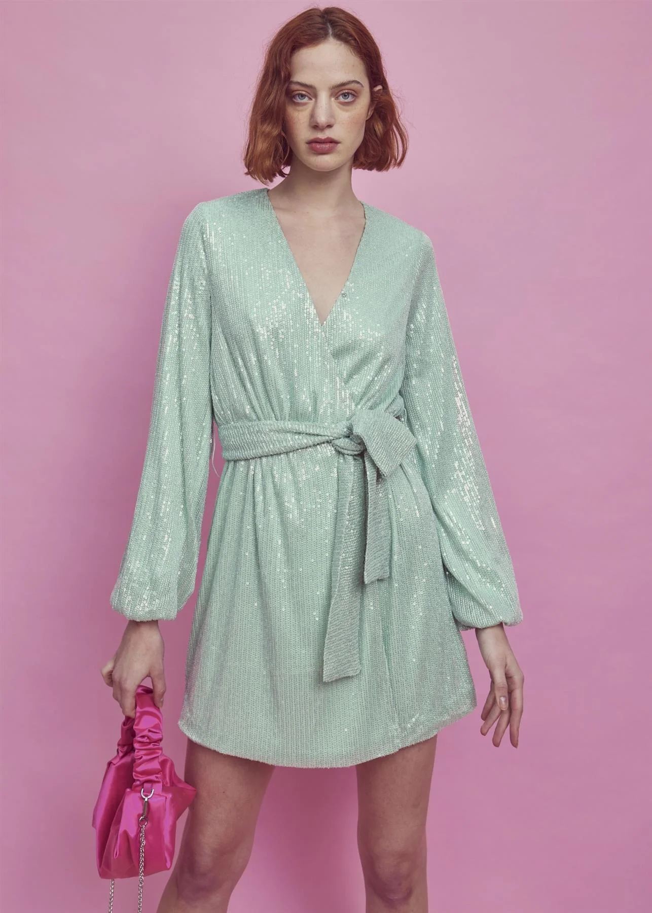 Alice Tie-Waist Sequin Mini-Dress -Apple-Green Sequin