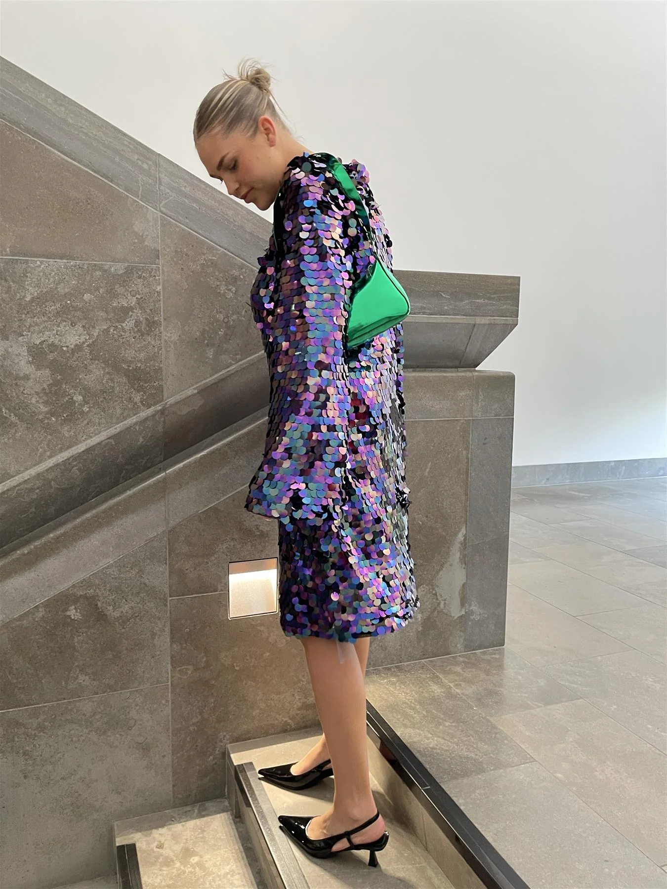 Curve Mackenzie Flared Sleeve Sequin Mini-Dress - Petrol Mix