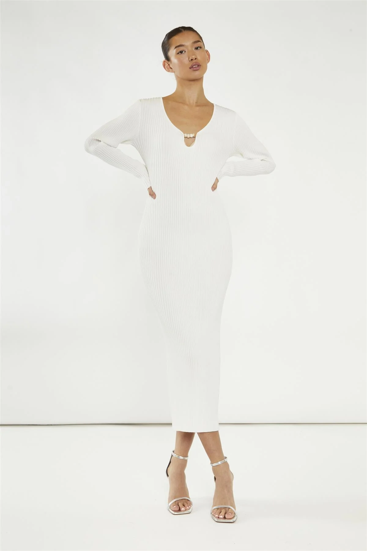 Off-White Bead Detail Maxi-Dress