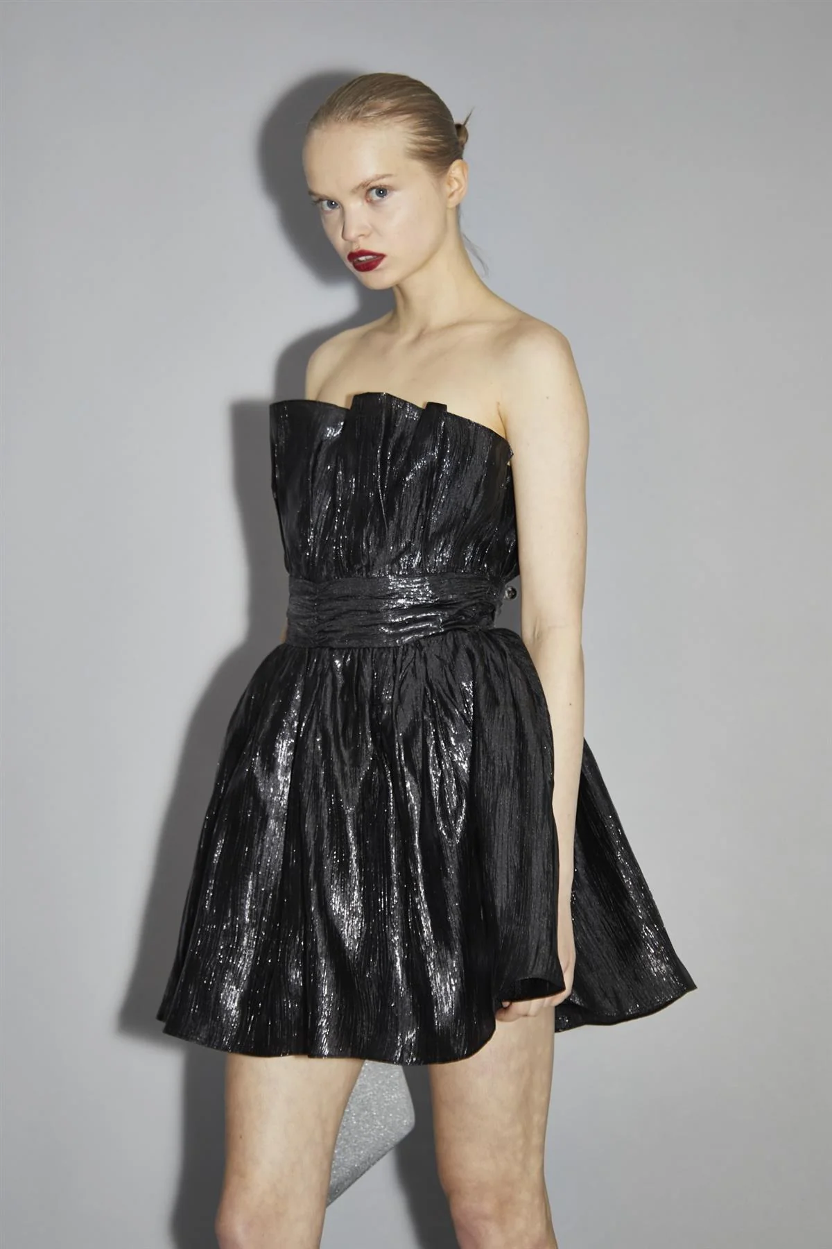 Callie Black Gathered-Bandeau Mini-Dress