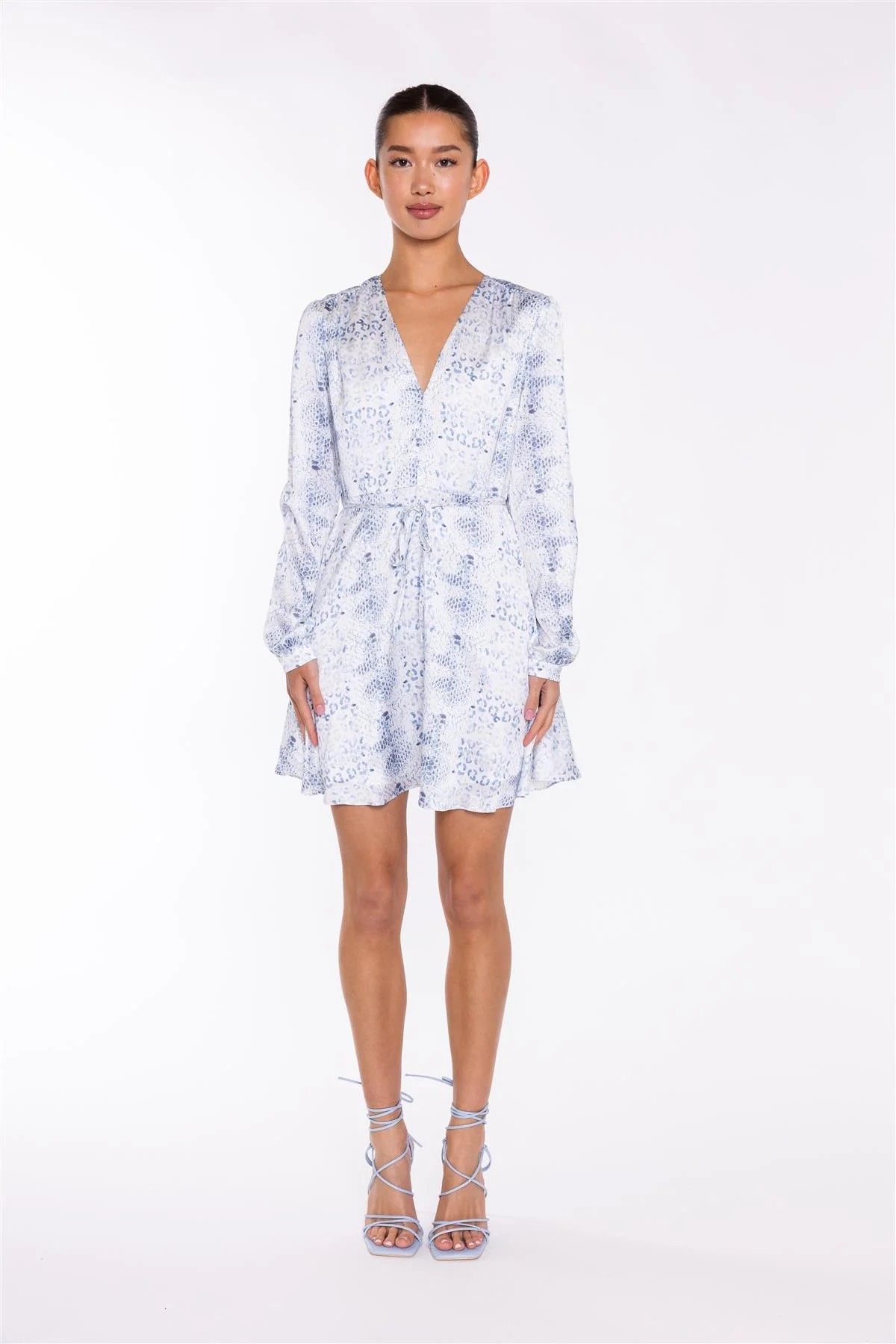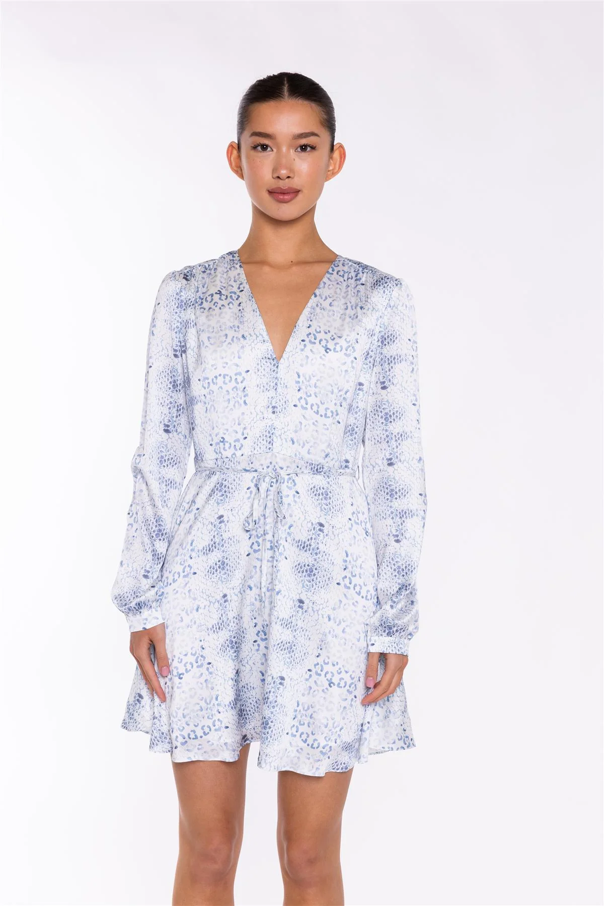 White-Blue Animal V-Neck Mini-Dress