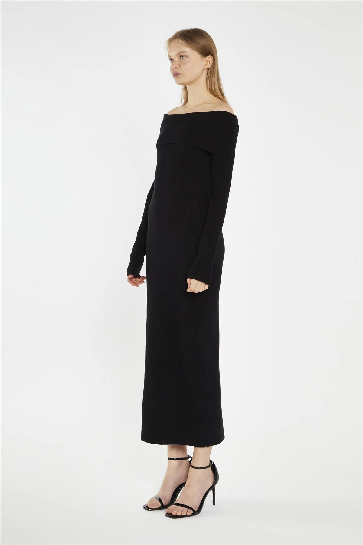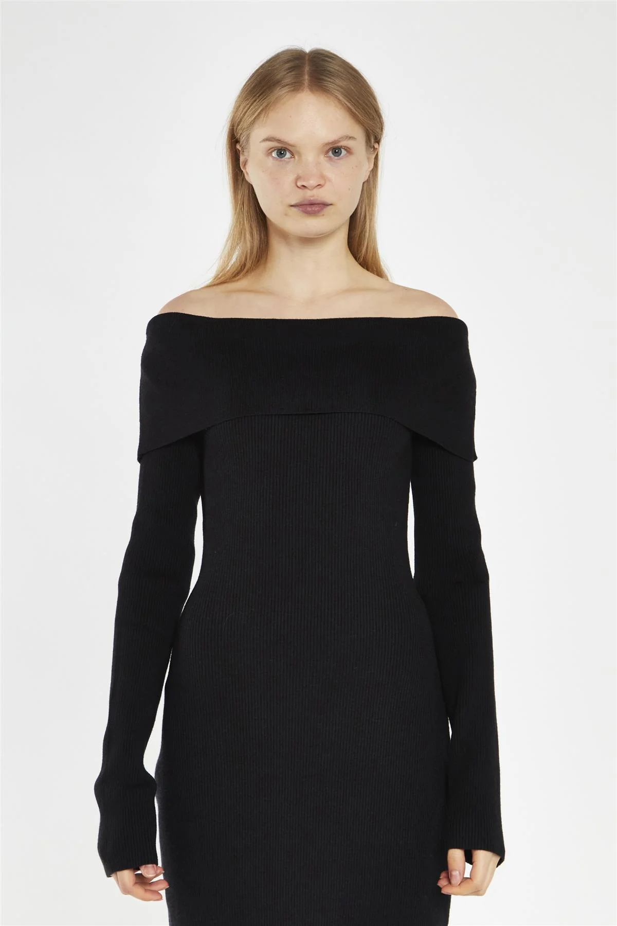 Black Bardot Knitted Midi-Dress