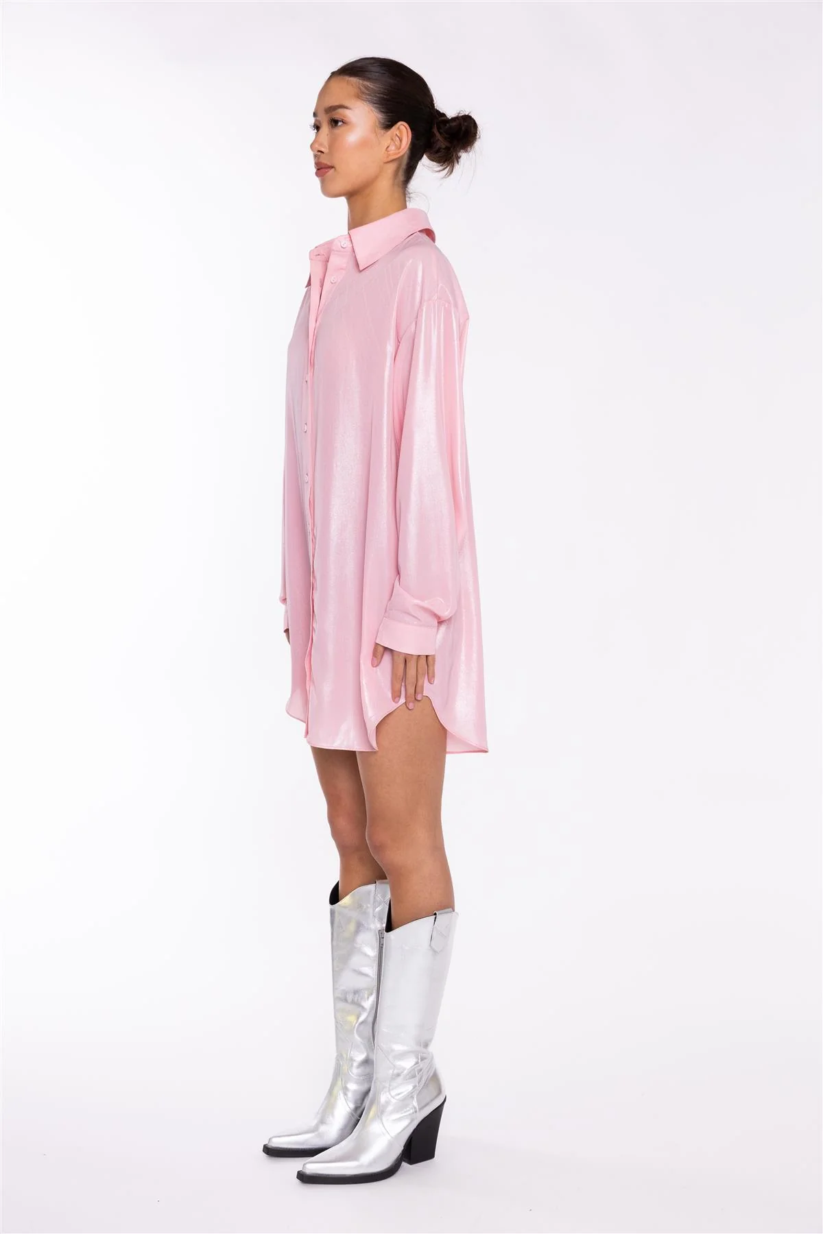 Candy-Pink Shimmer Shirt Mini-Dress