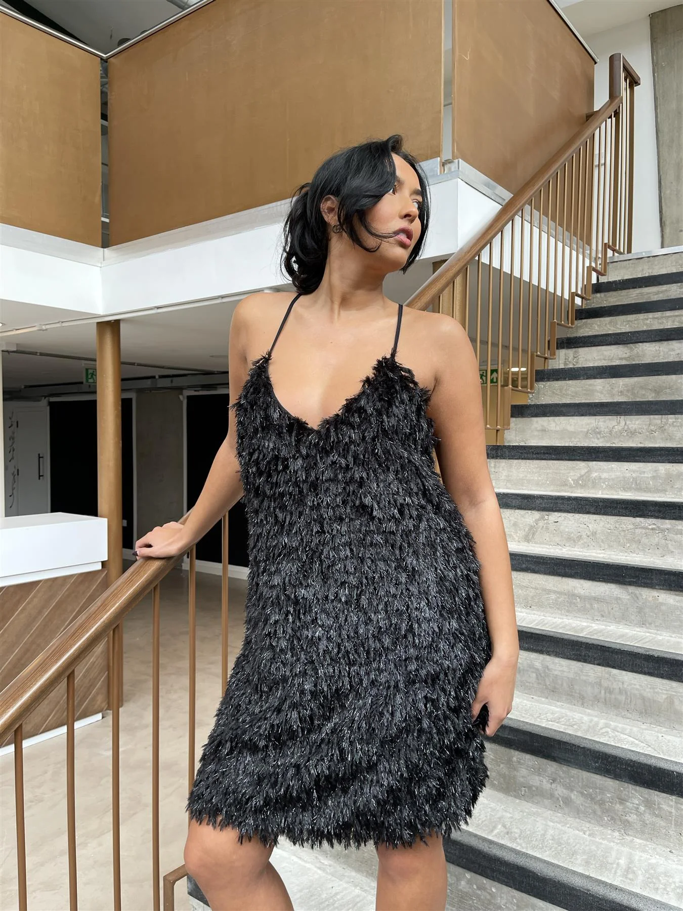 Black Plunge Midi-Dress