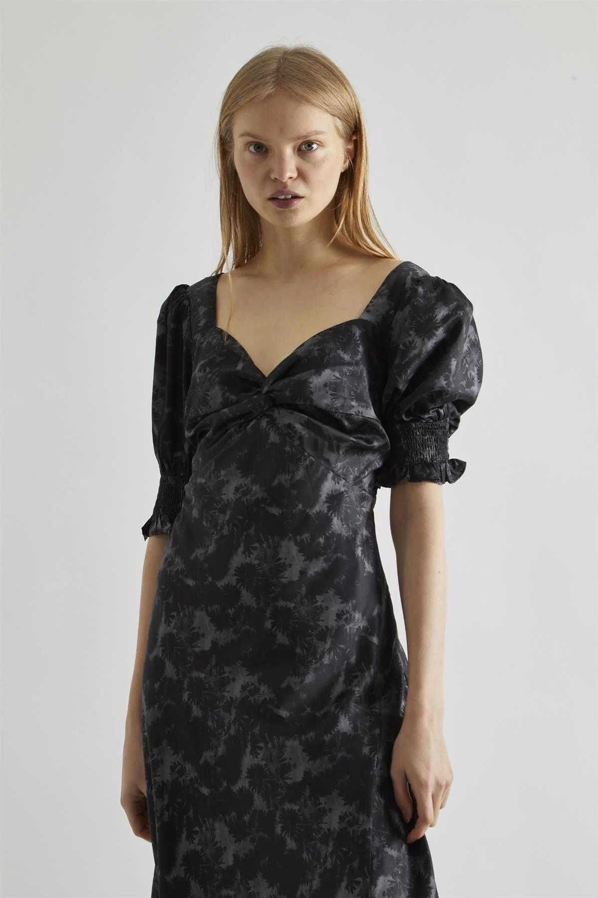 Charcoal Digital-Floral Twist-Front Maxi-Dress