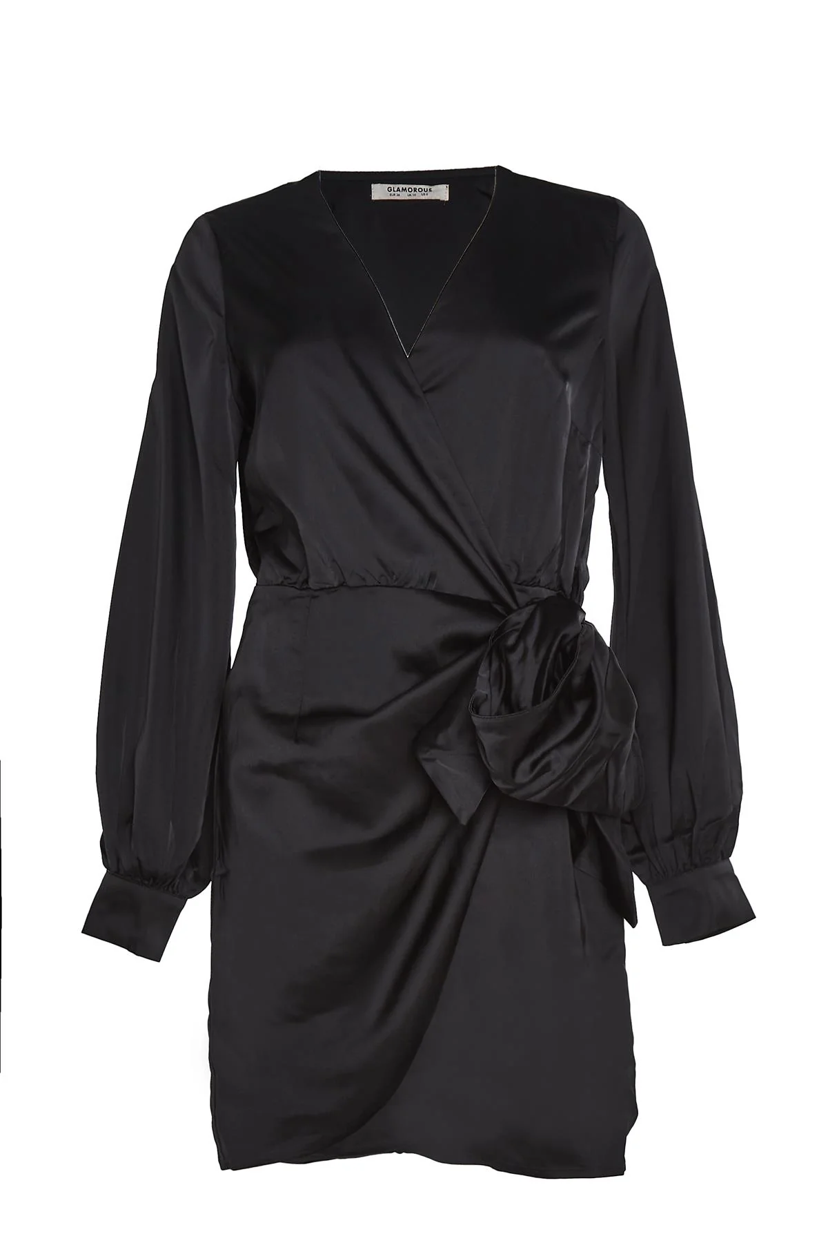Black-Satin Wrap-Tie Midi-Dress