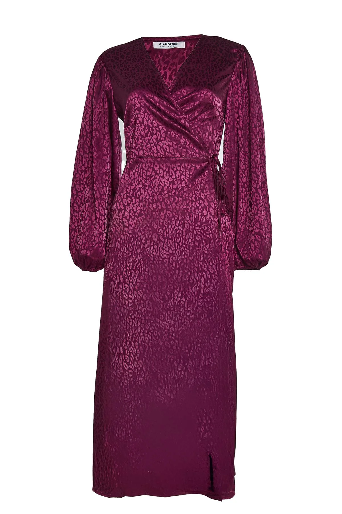 Plum Leopard-Jacquard Tie-Waist Maxi-Dress