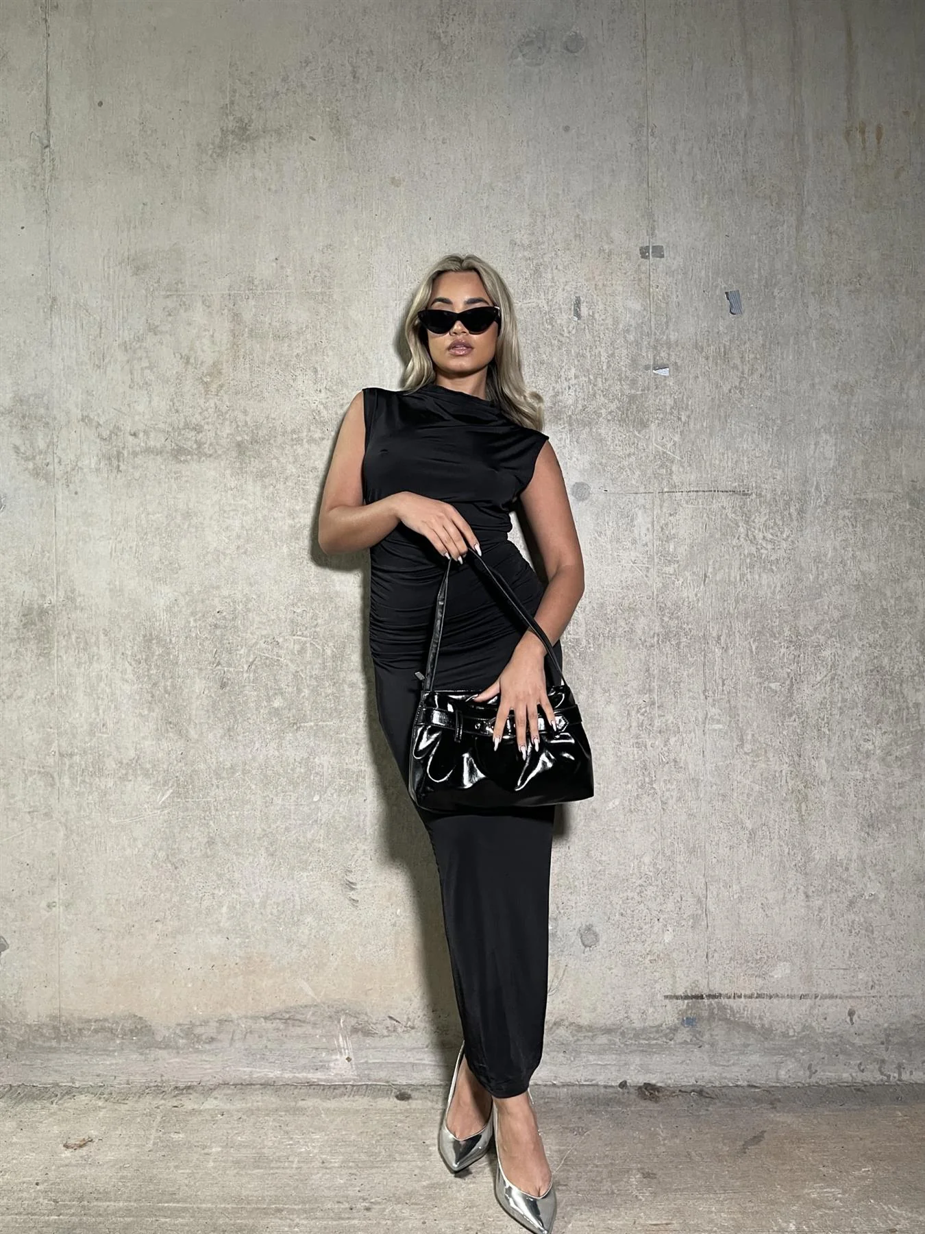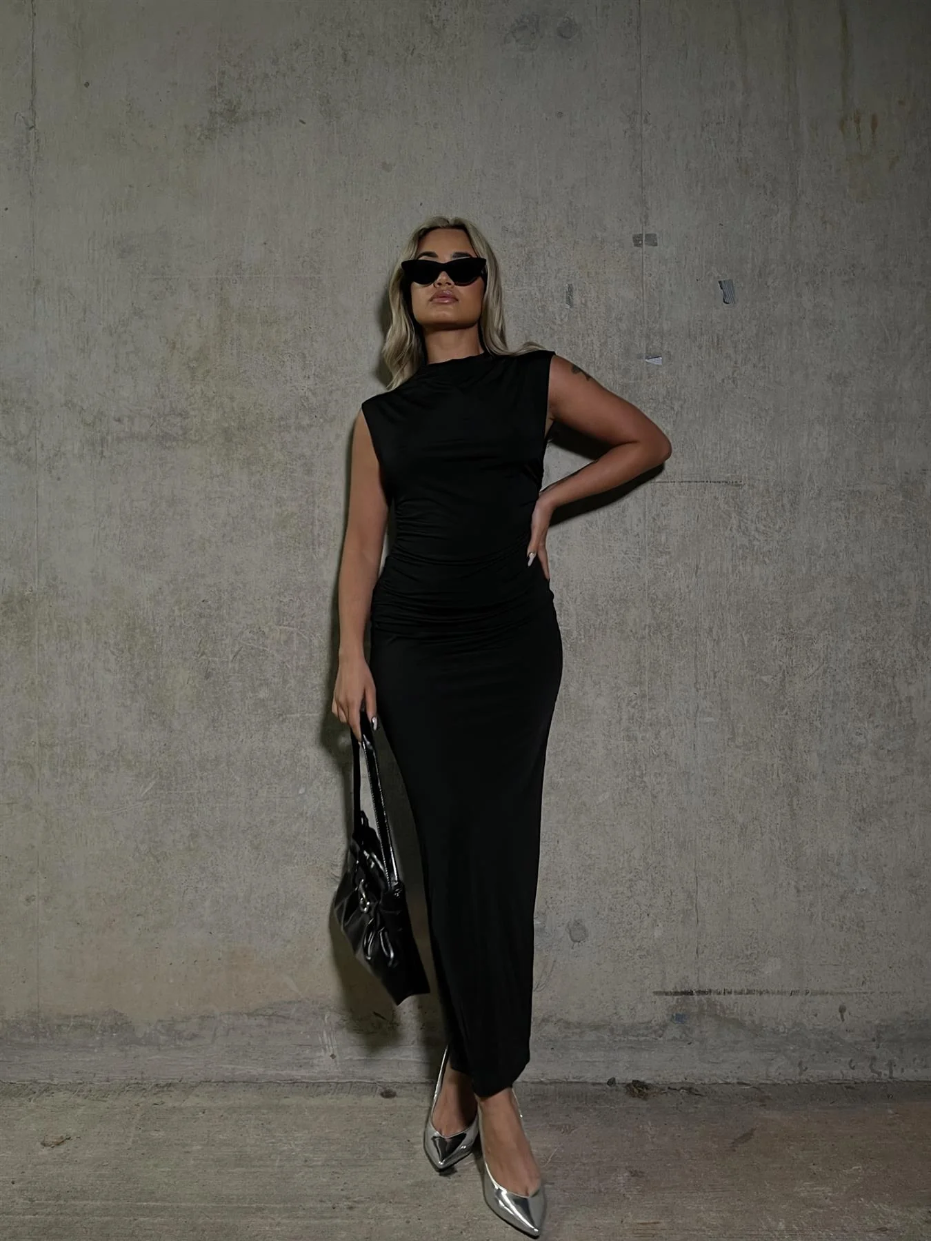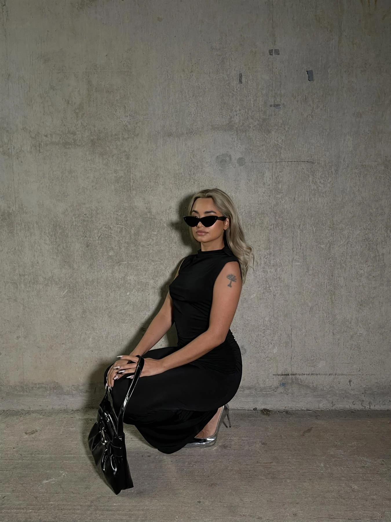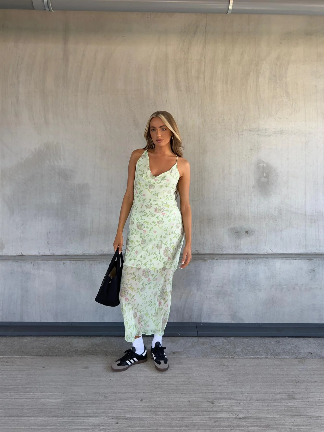 Willow Asymmetric Midaxi Dress -Green Watercolour Flower