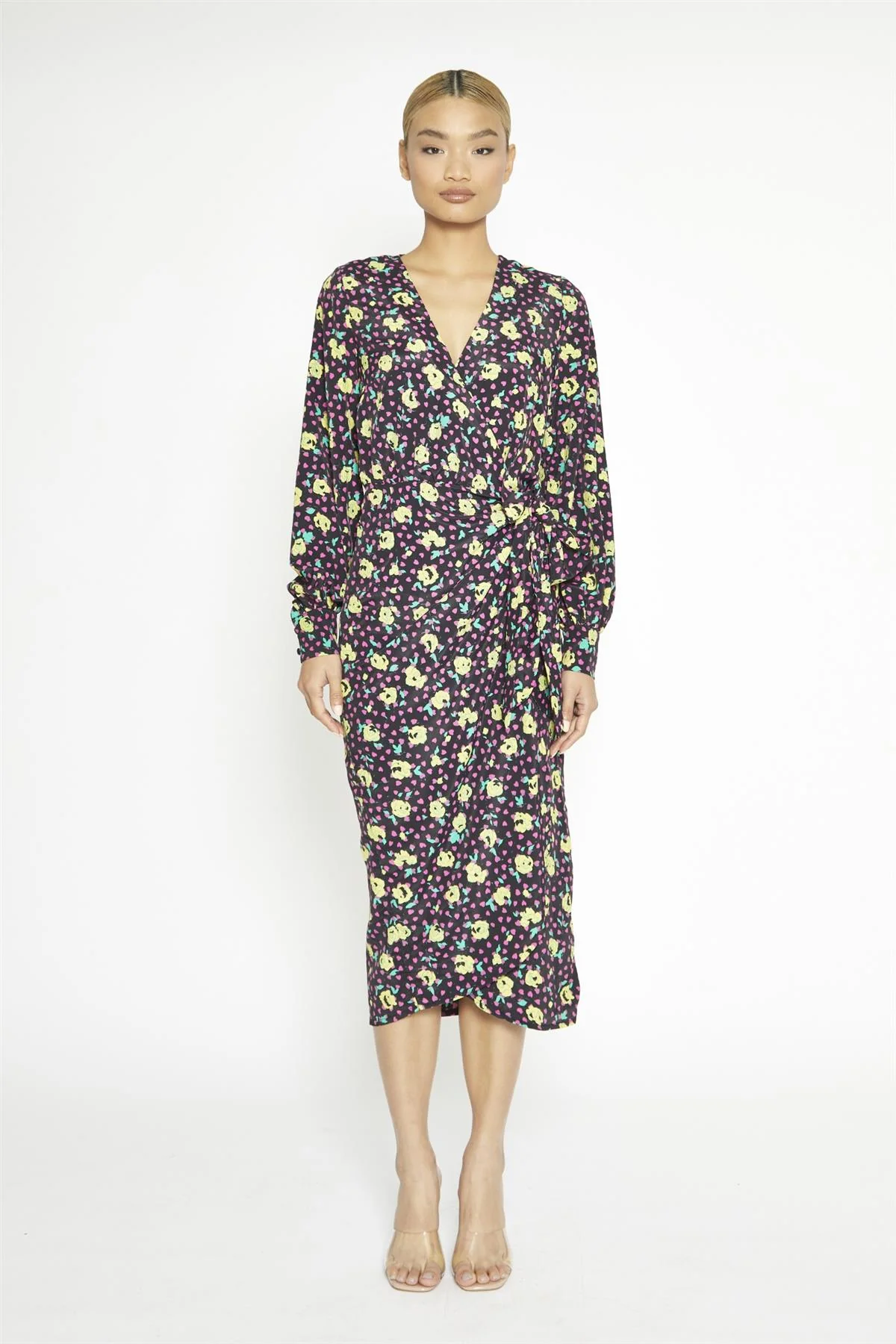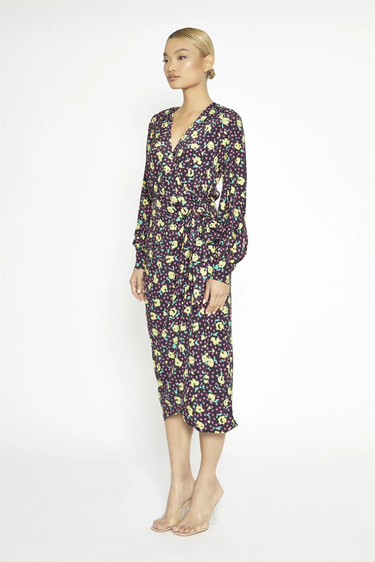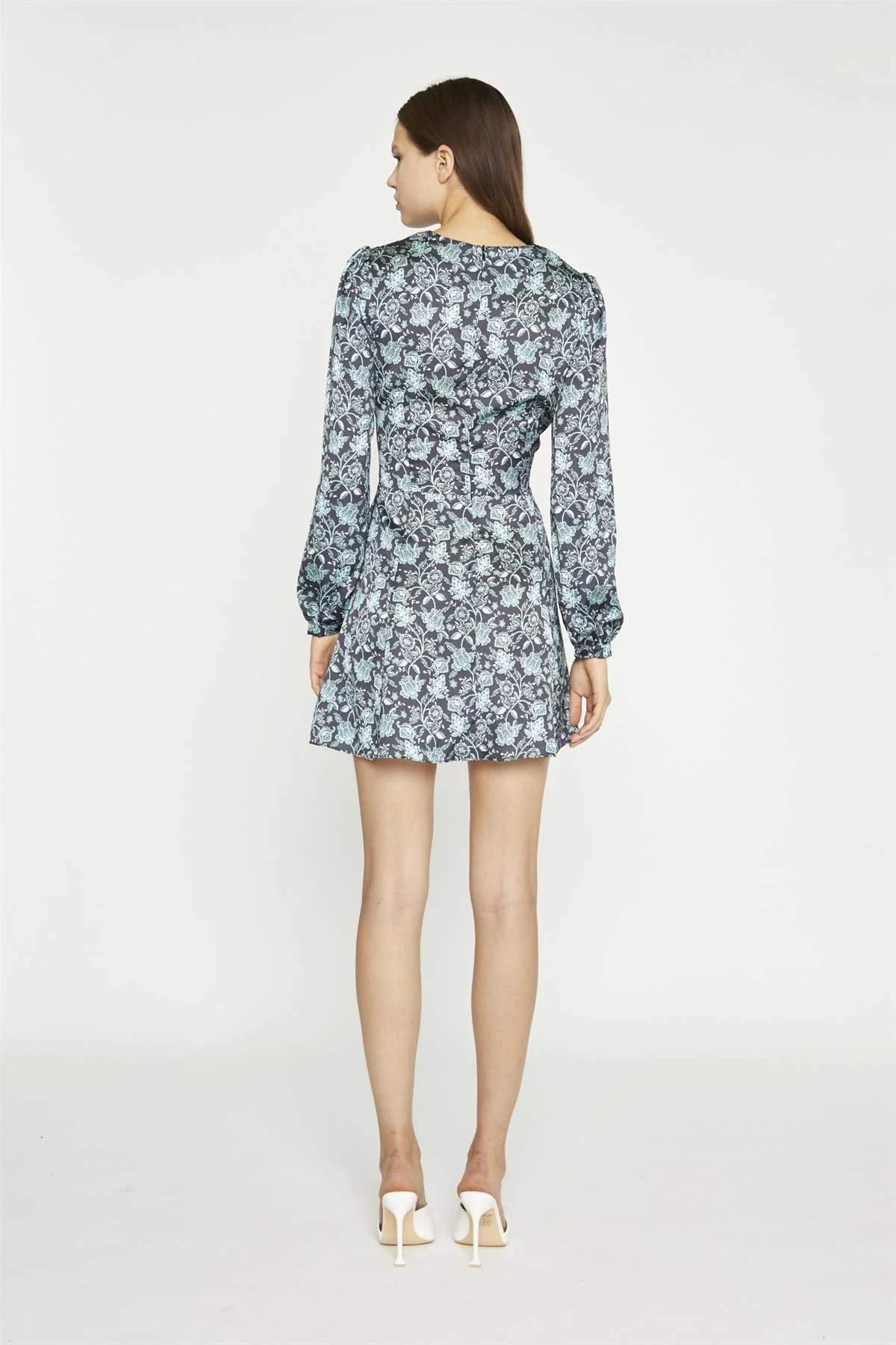 Black-Mint Paisley Sateen Long Sleeve Tea Mini-Dress