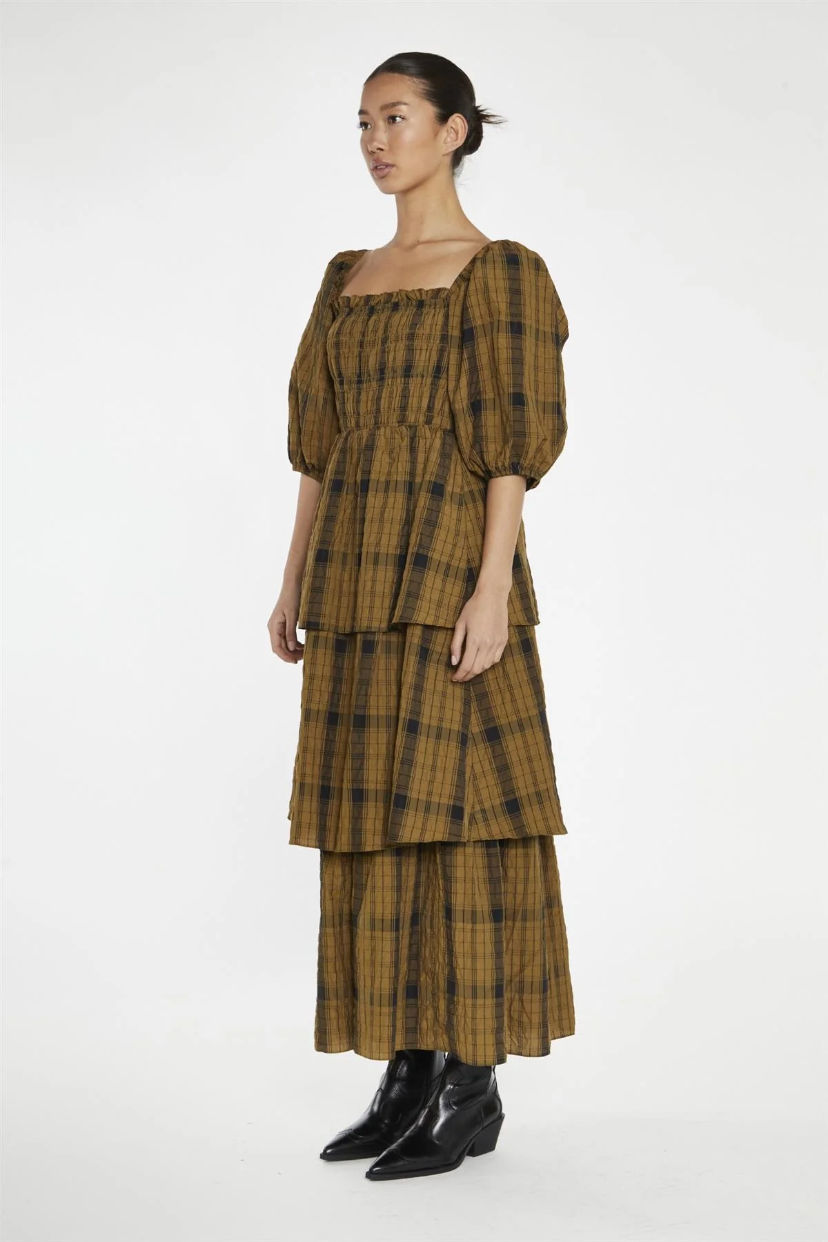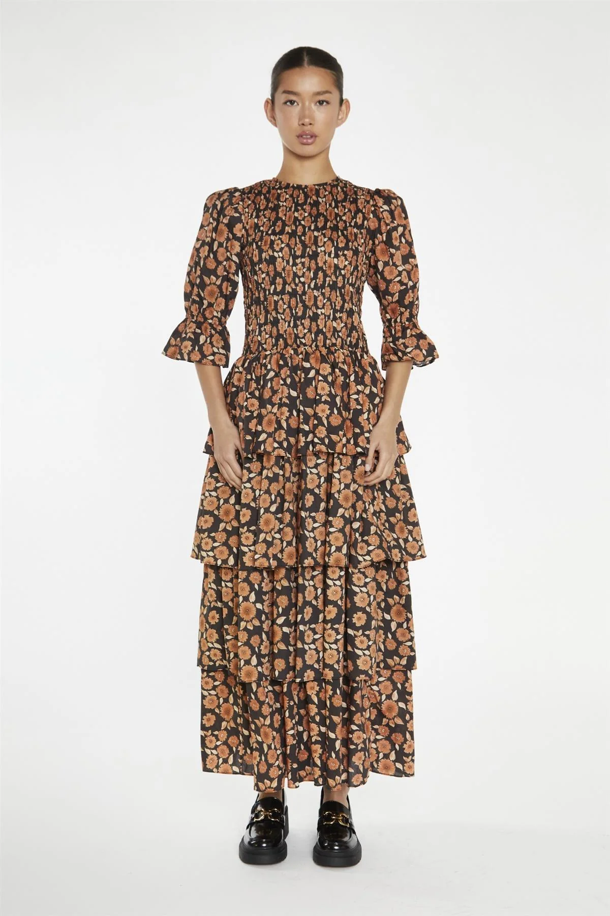 Burnt-Orange Daisy Tiered Maxi-Dress