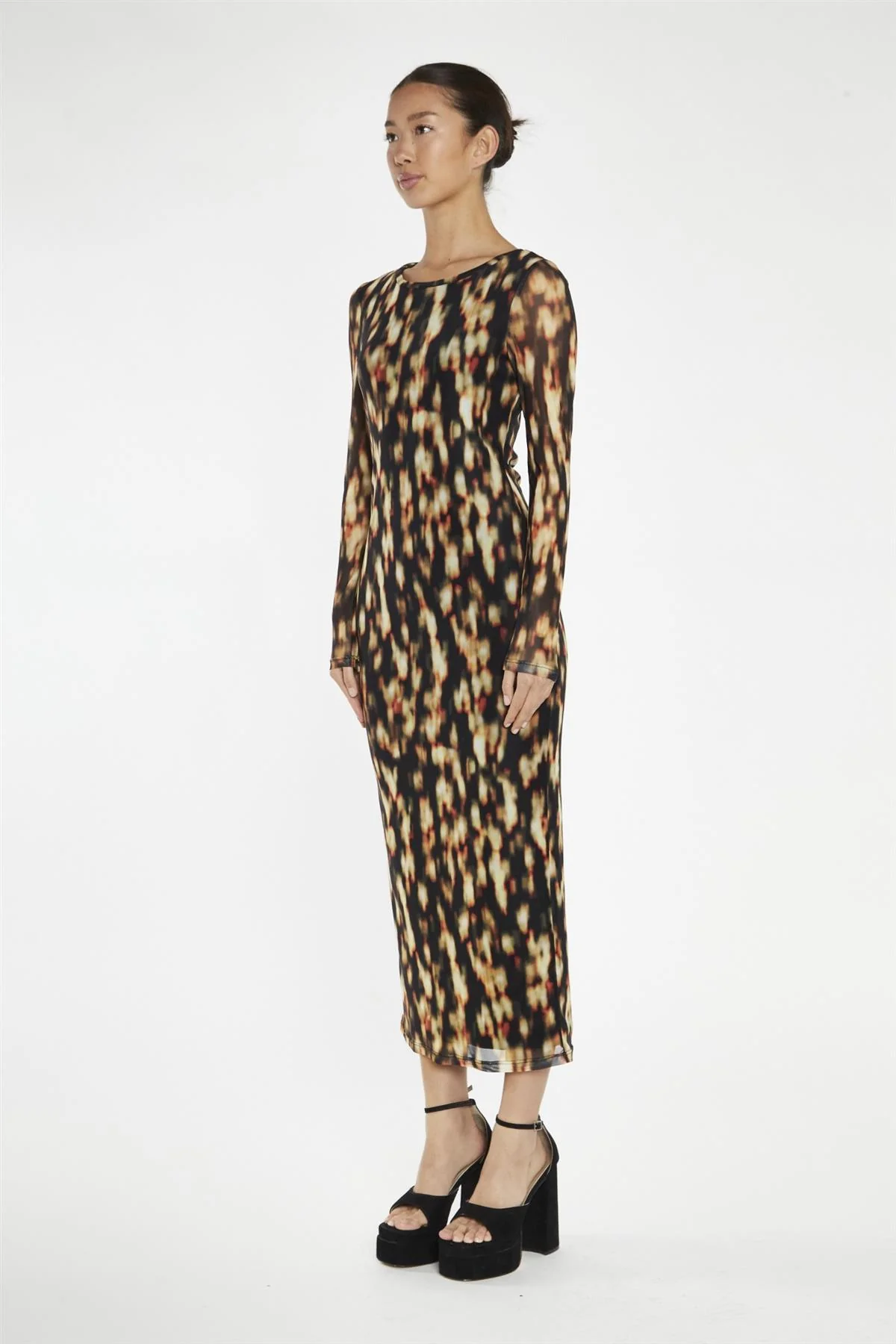 Digital Tie-Dye Mesh Bodycon Midi-Dress