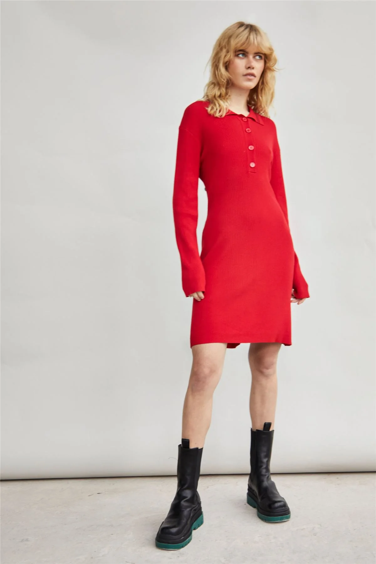 Red Burgundy Long Sleeve Button Up Midi Dress