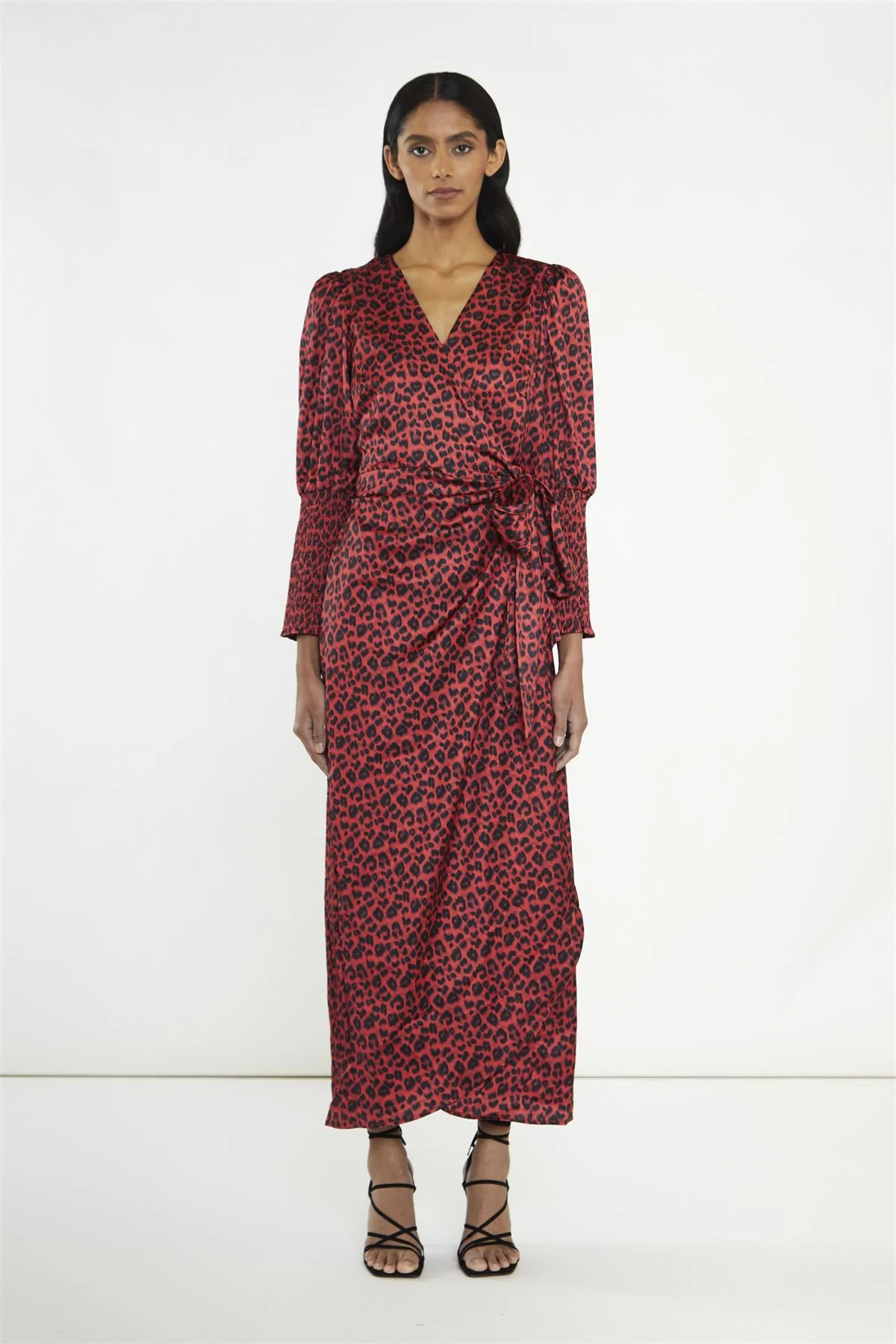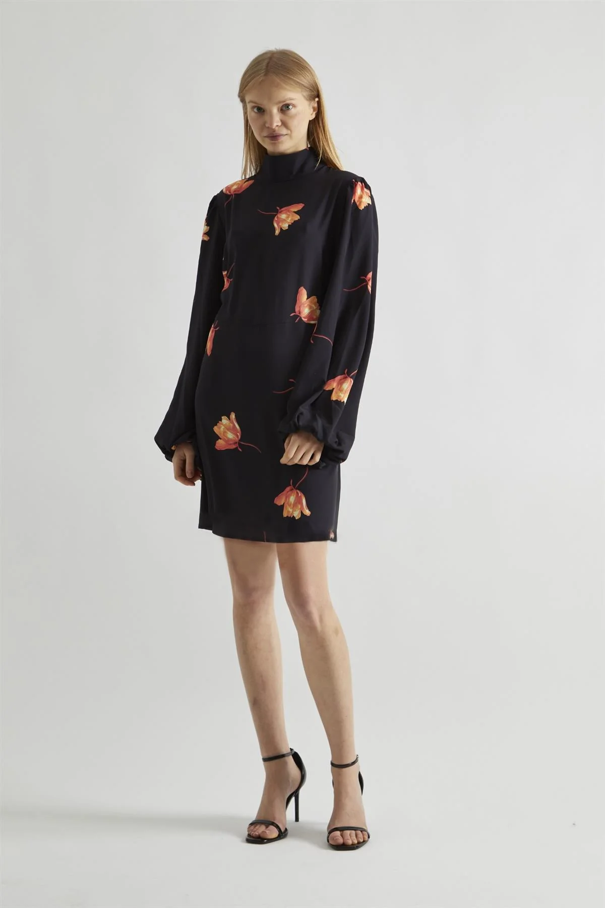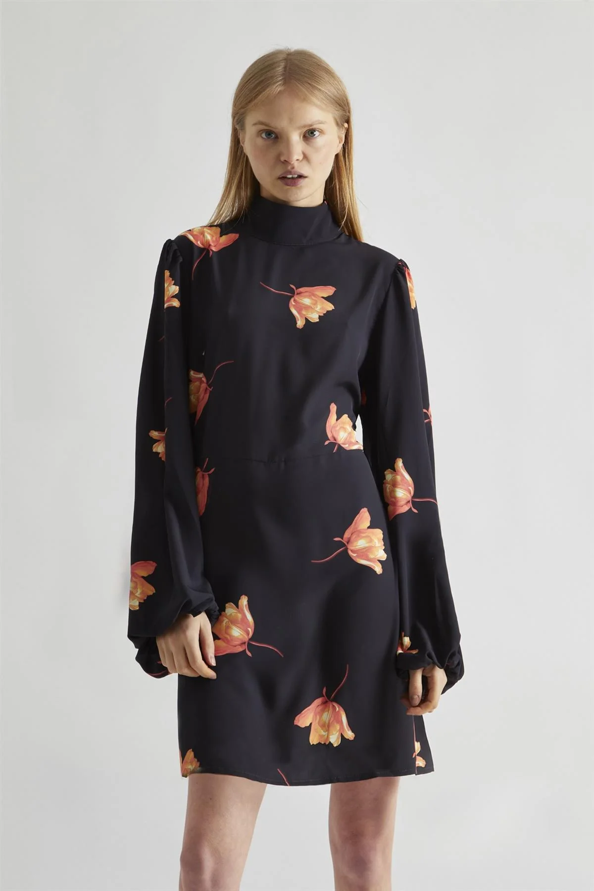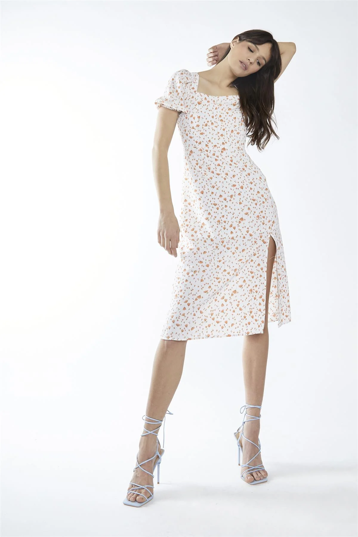 Coral Tulip Ditsy Square-Neck Midi-Dress