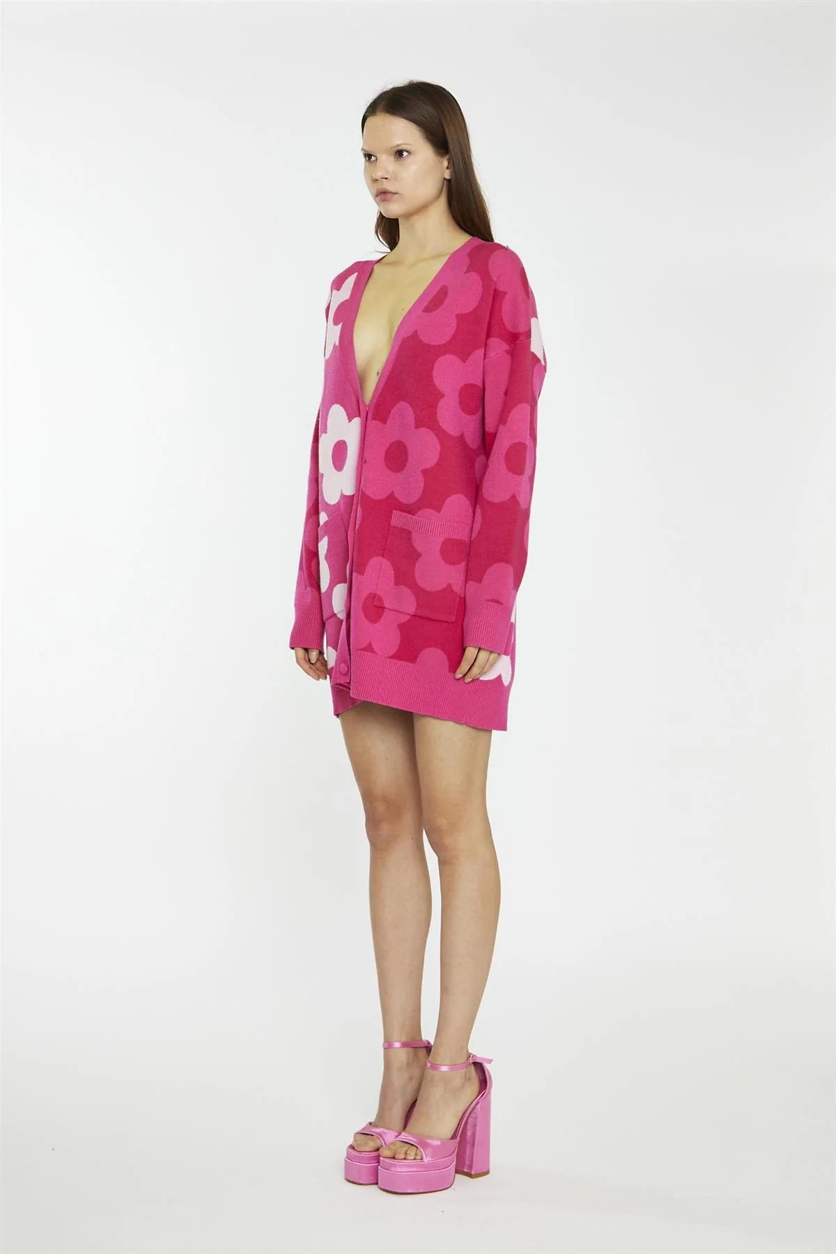 Hot Pink Short-Sleeve Knitted Crop-Top