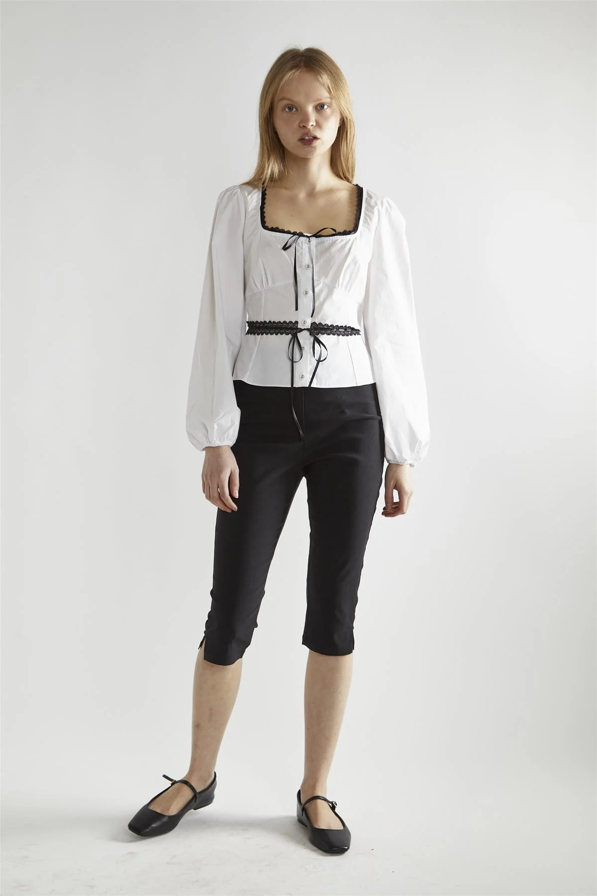 White-Black Square-Neck Long-Sleeve Top