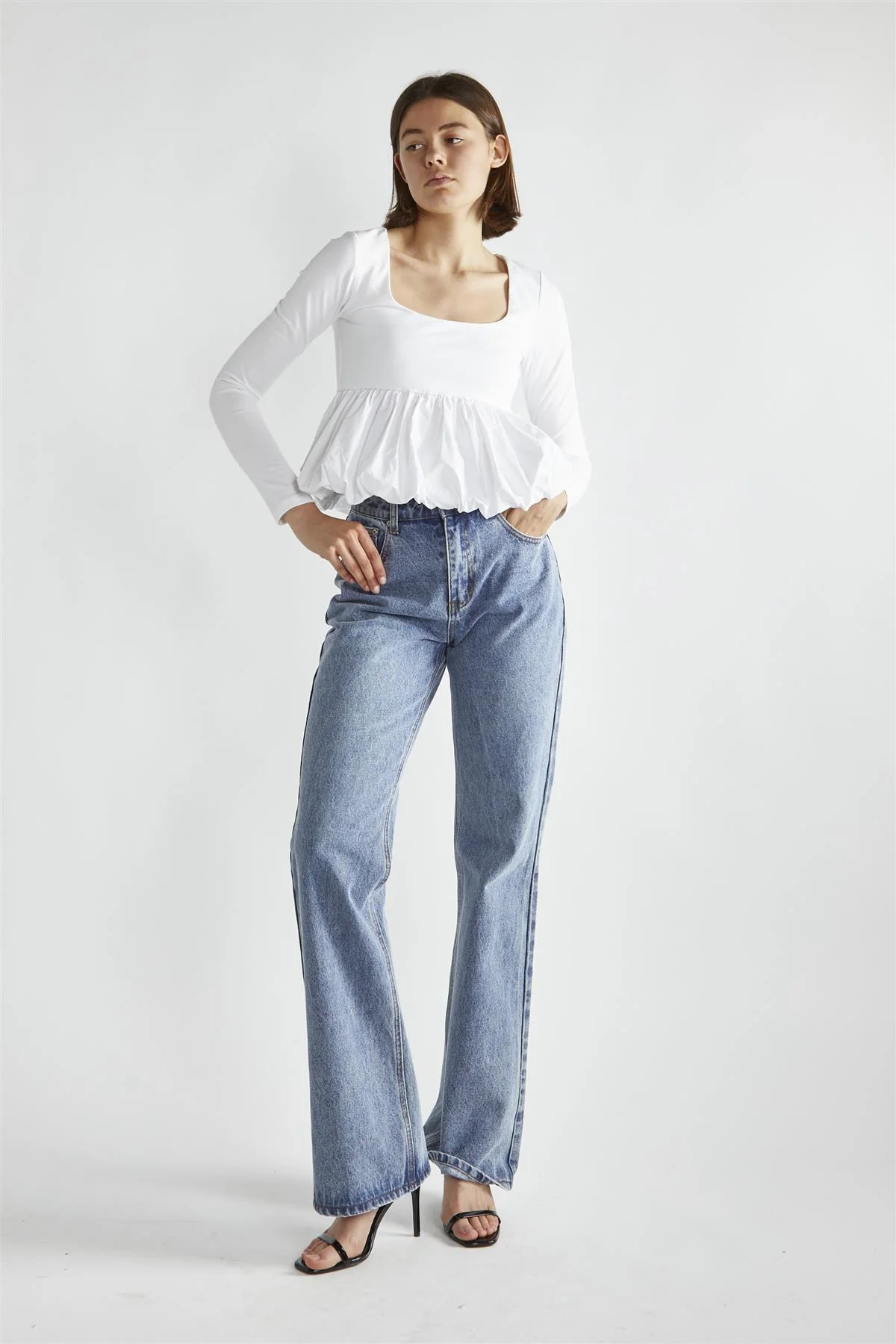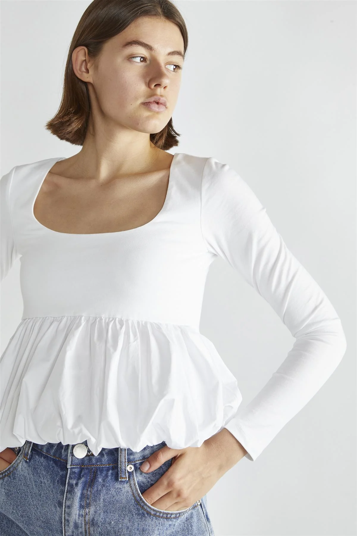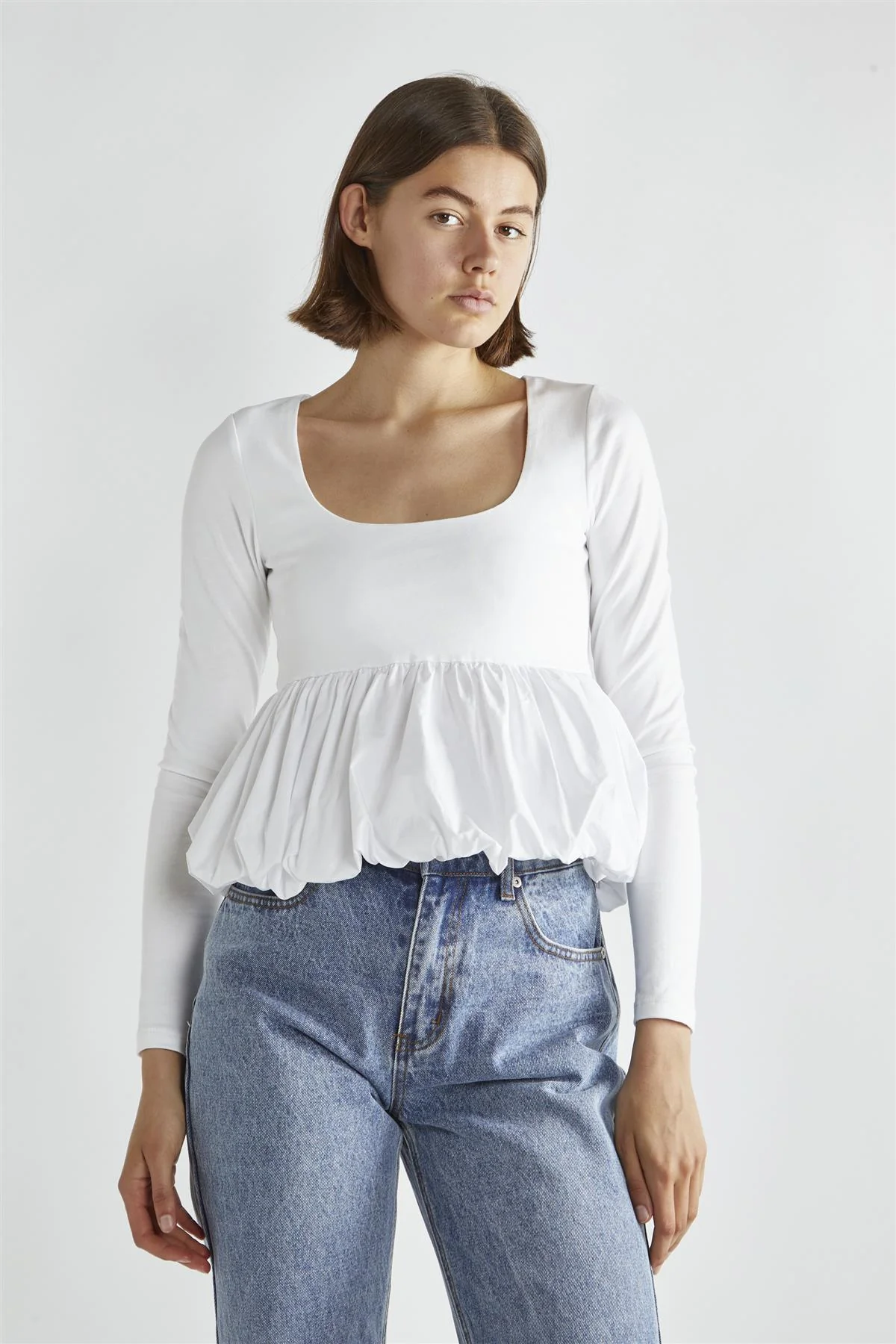 White Square-Neck Puff-Peplum Top