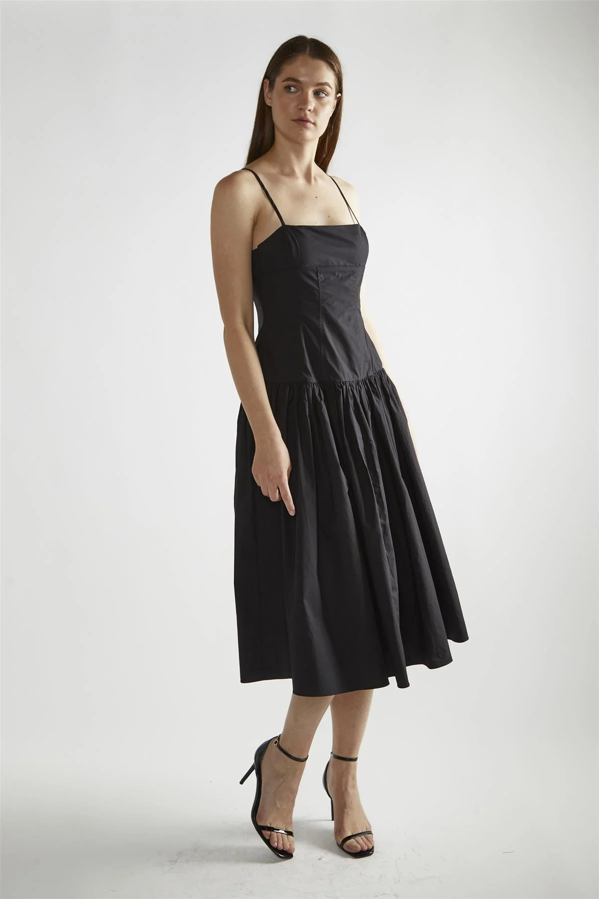 Black Square-Neck Skater Midi-Dress