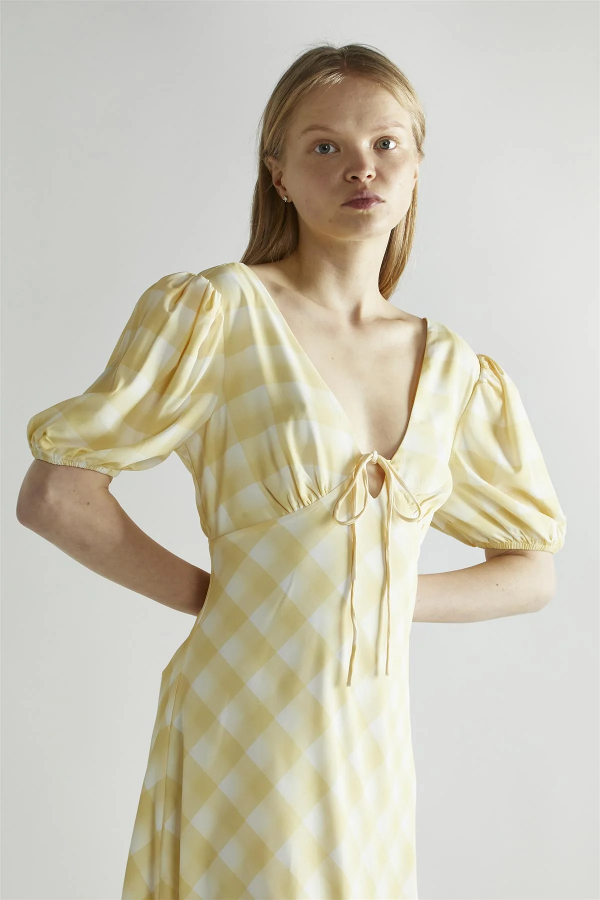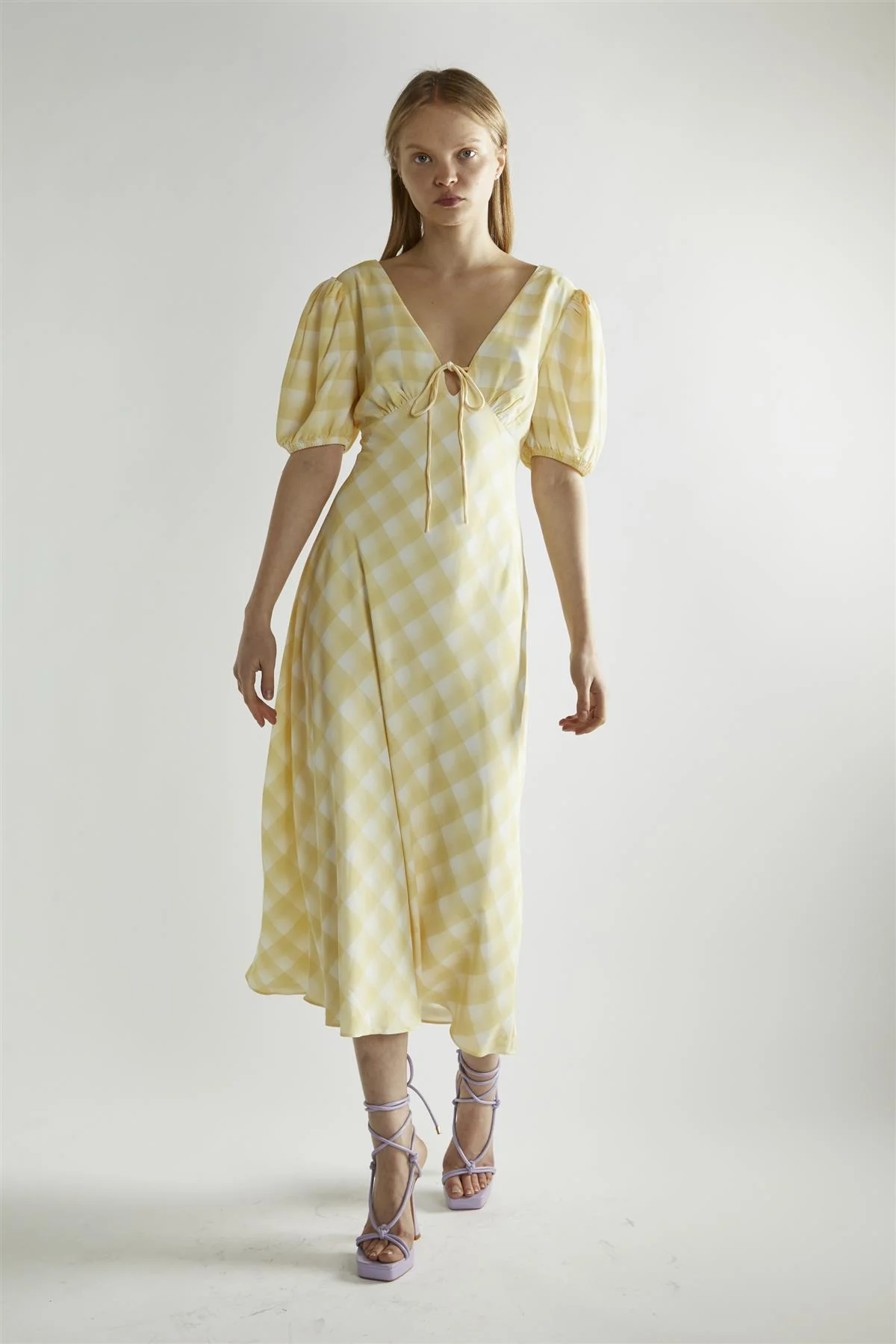 Yellow Ombre-Check A-Line Midi-Dress