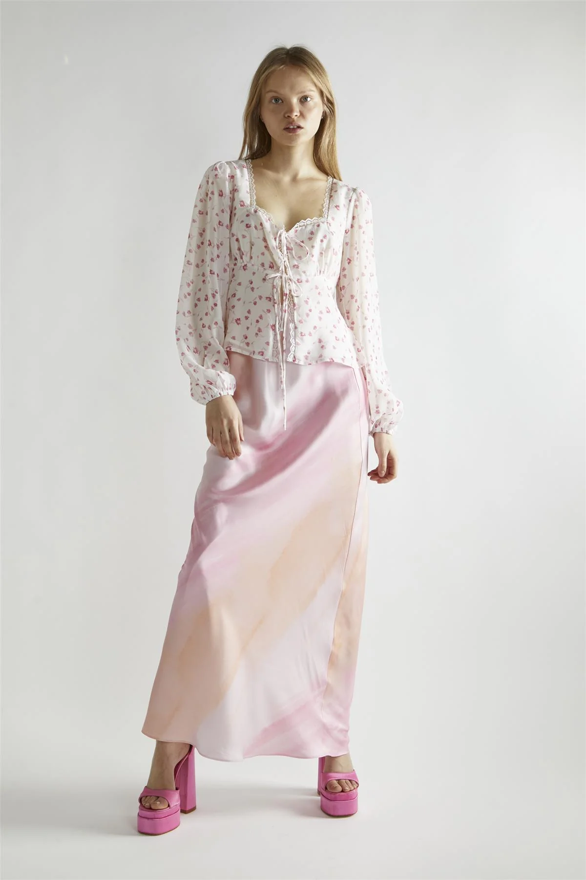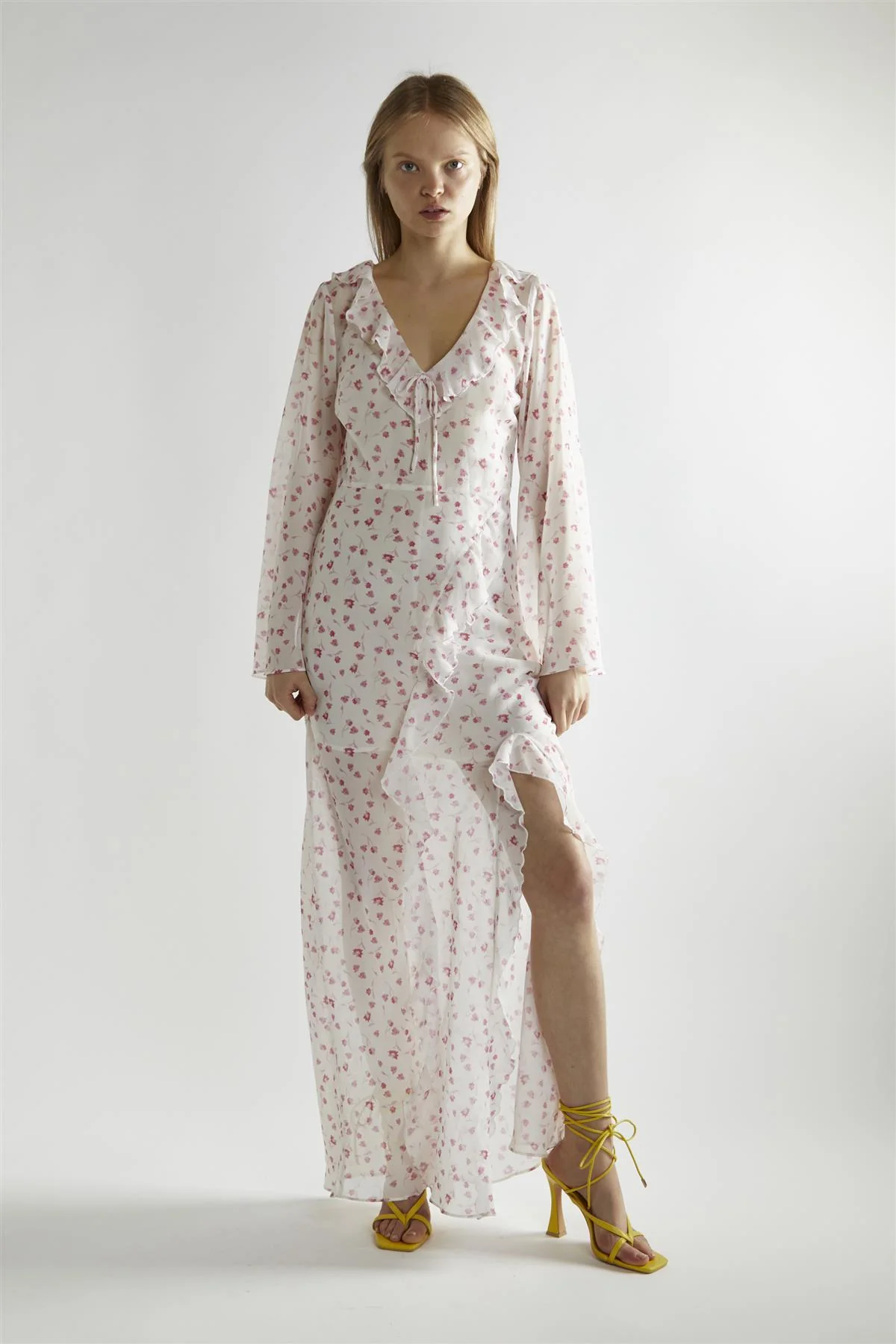 Pink Watercolour-Floral V-Neck Maxi-Dress
