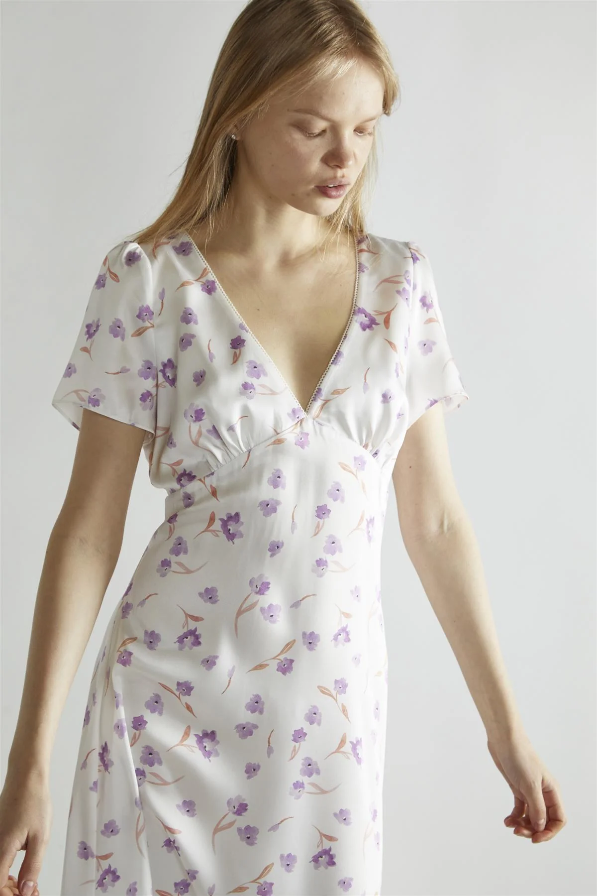 Lilac Watercolour-floral V-Neck Maxi-Dress
