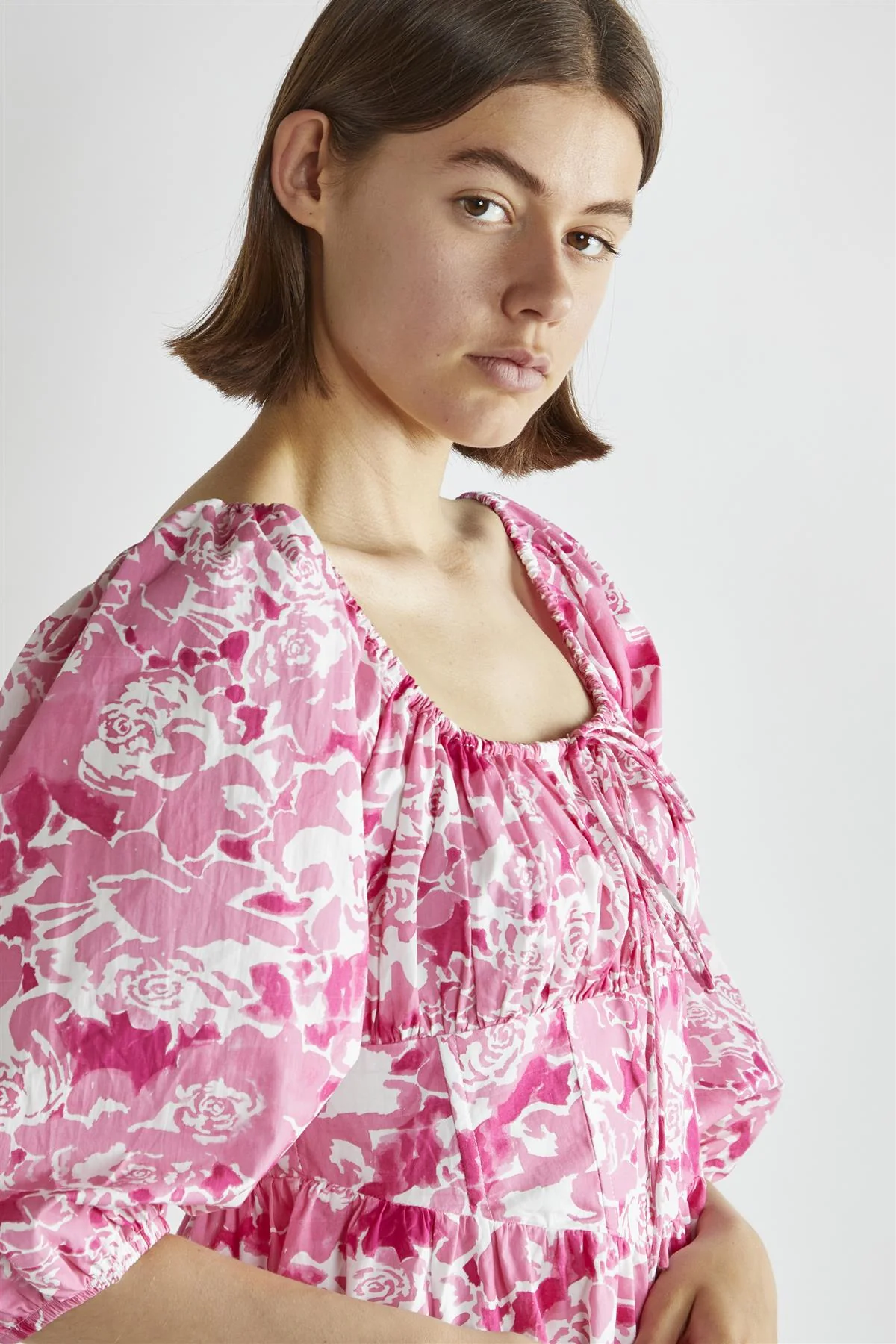 Pink Watercolour-Floral V-Neck Top