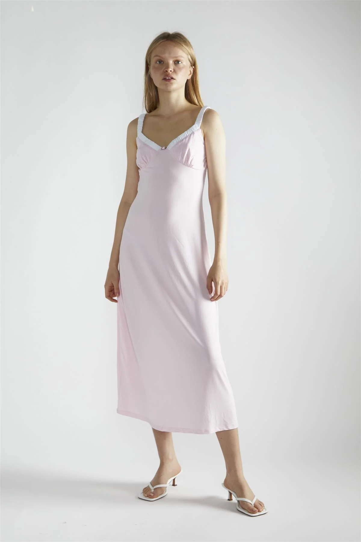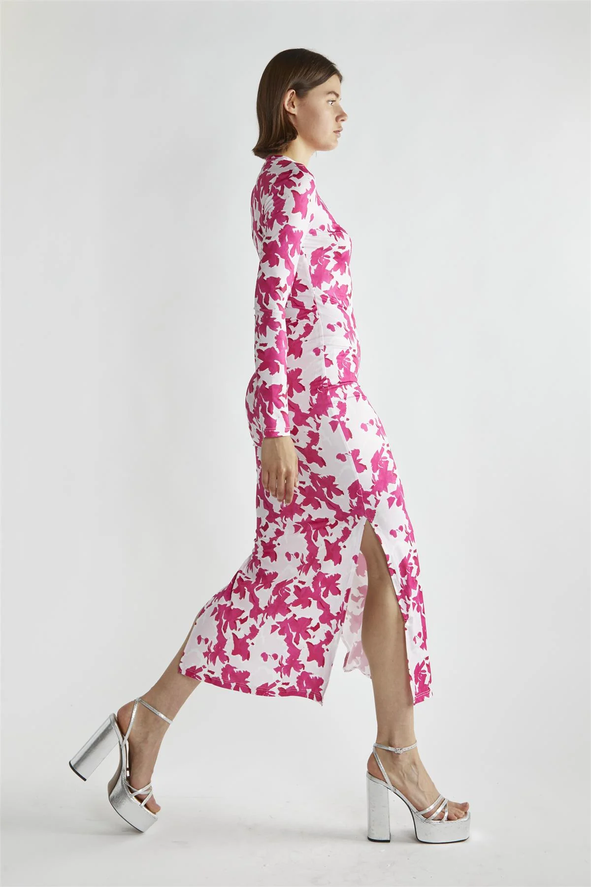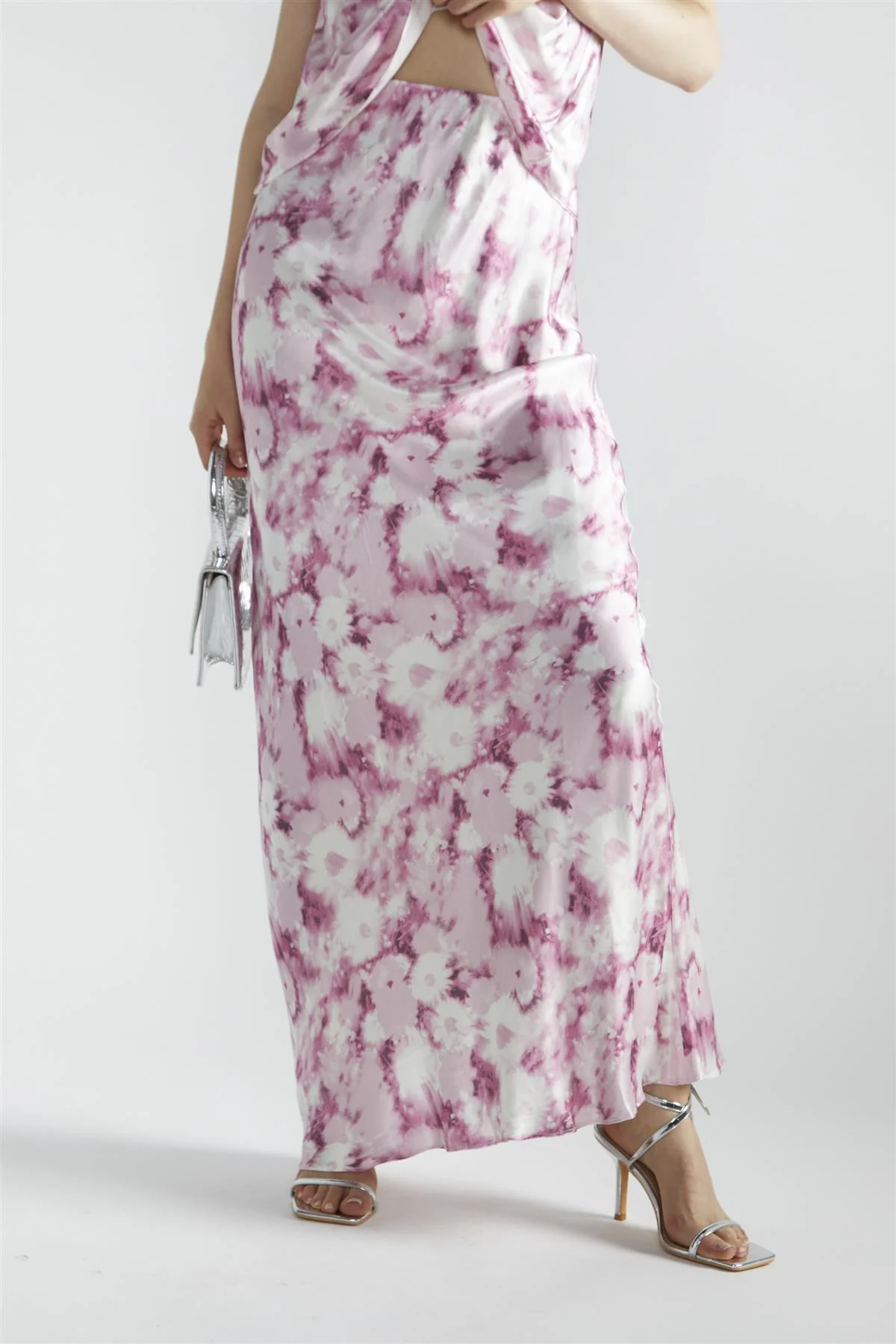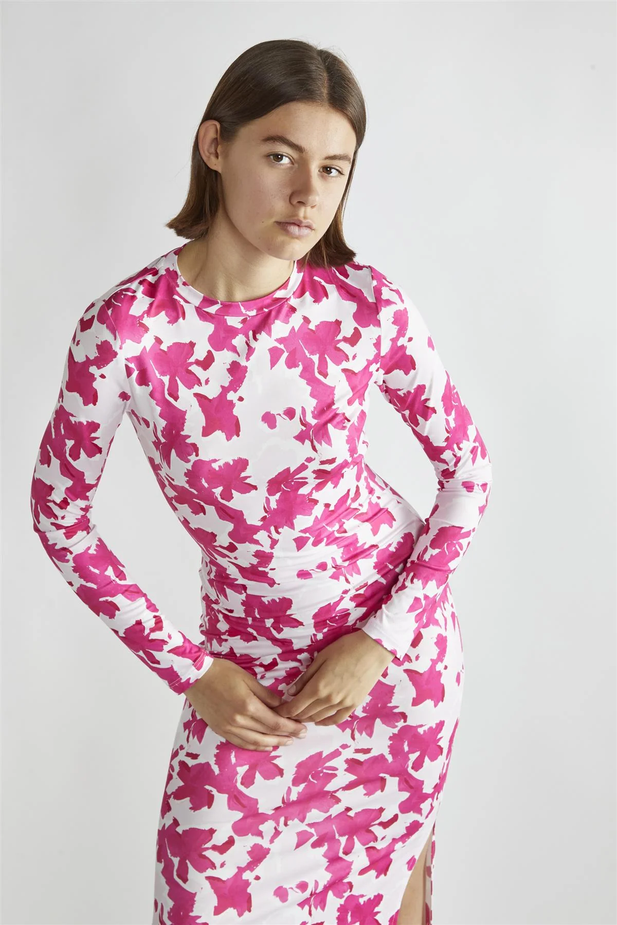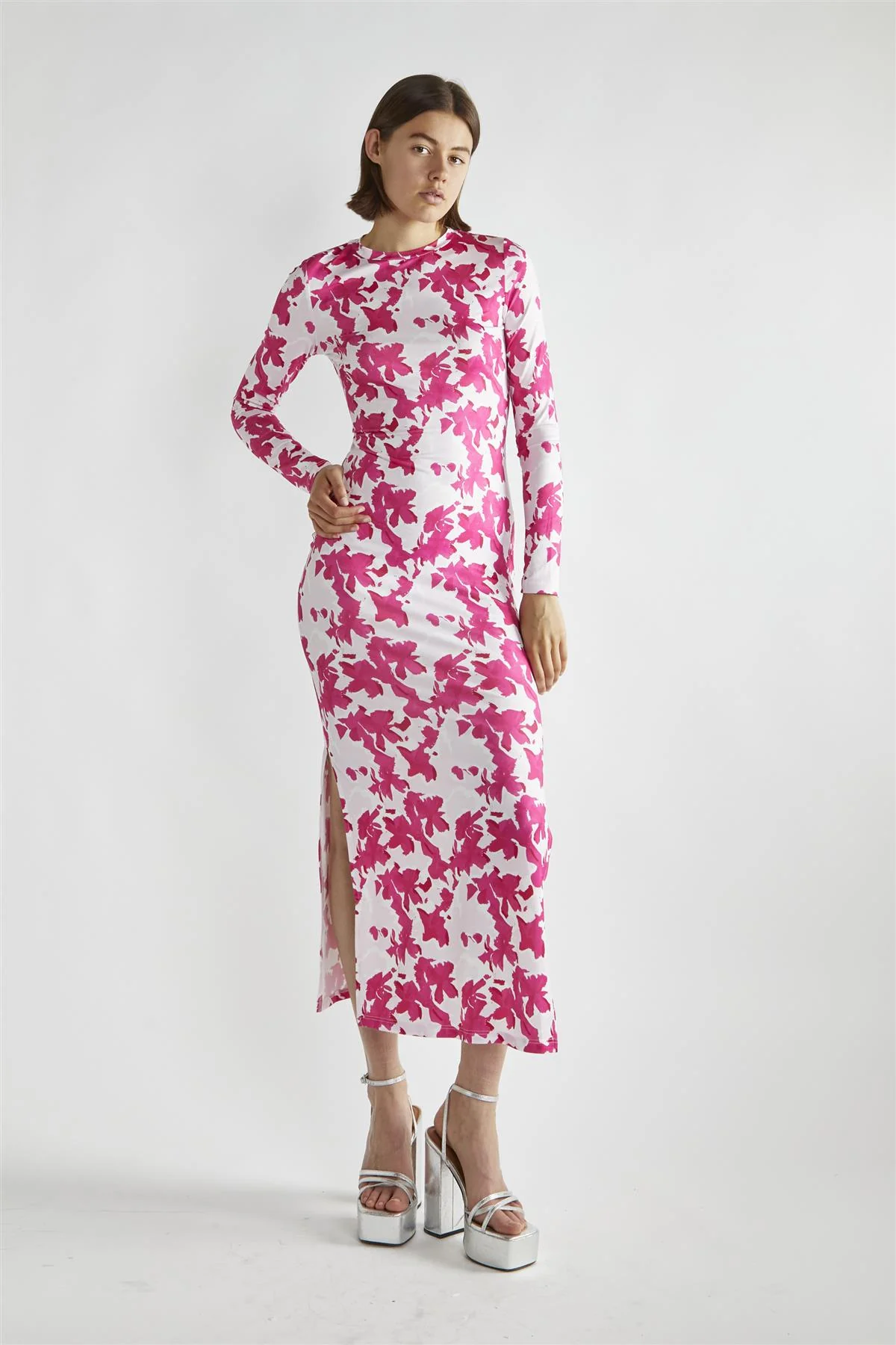 Pink Brushstroke Flowers Round Neck Maxi-Dress