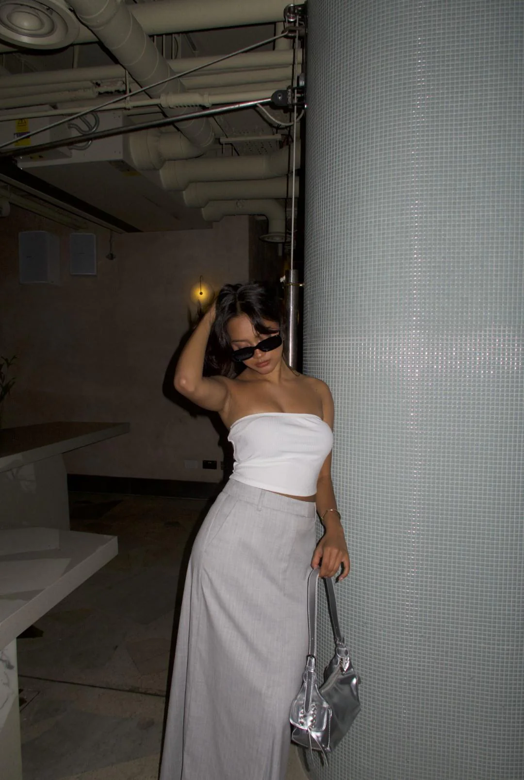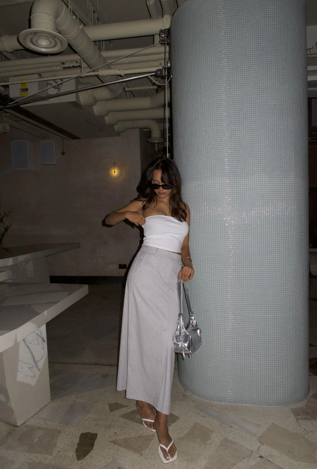 Light-Grey-Pinstripe Pencil Maxi Skirts
