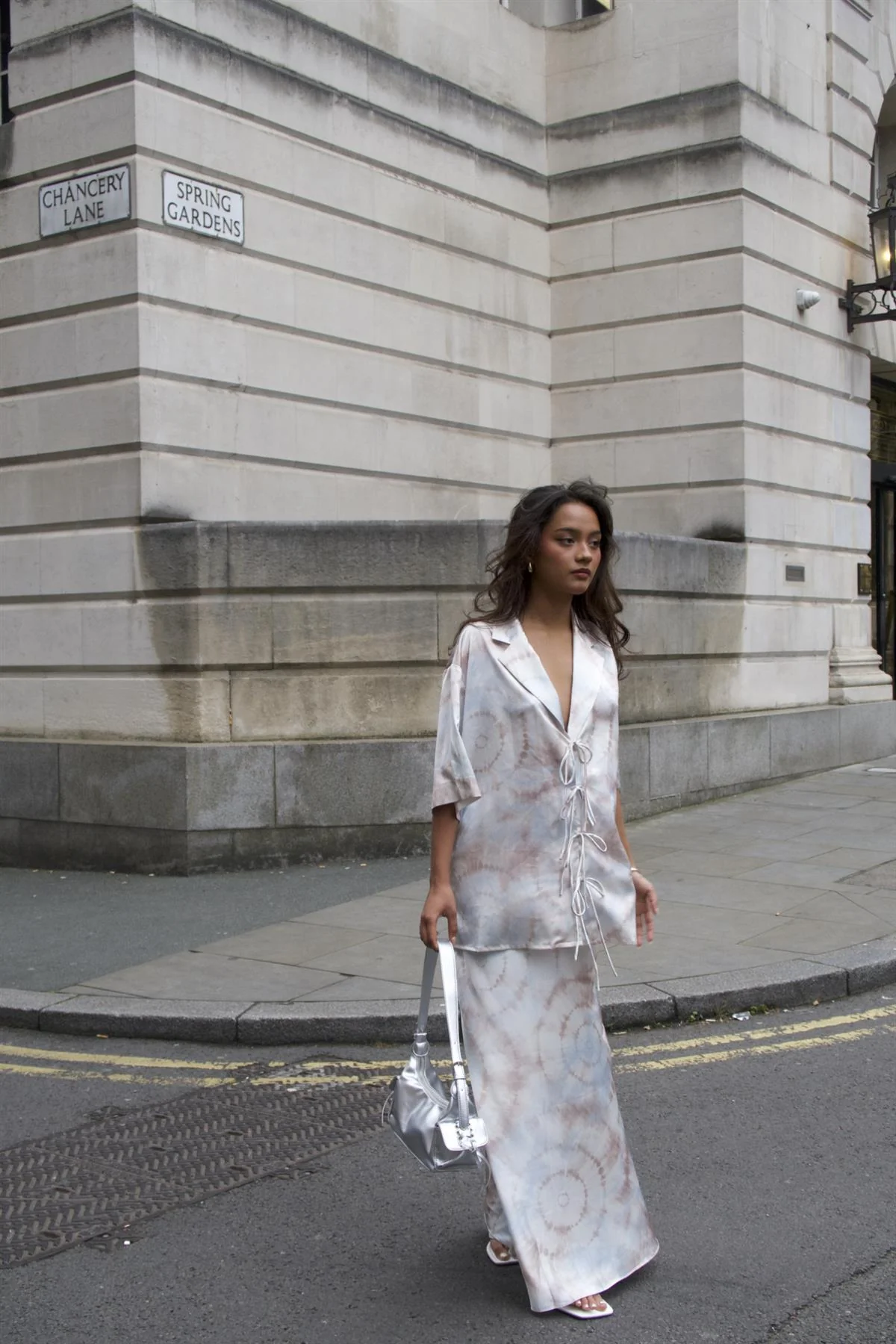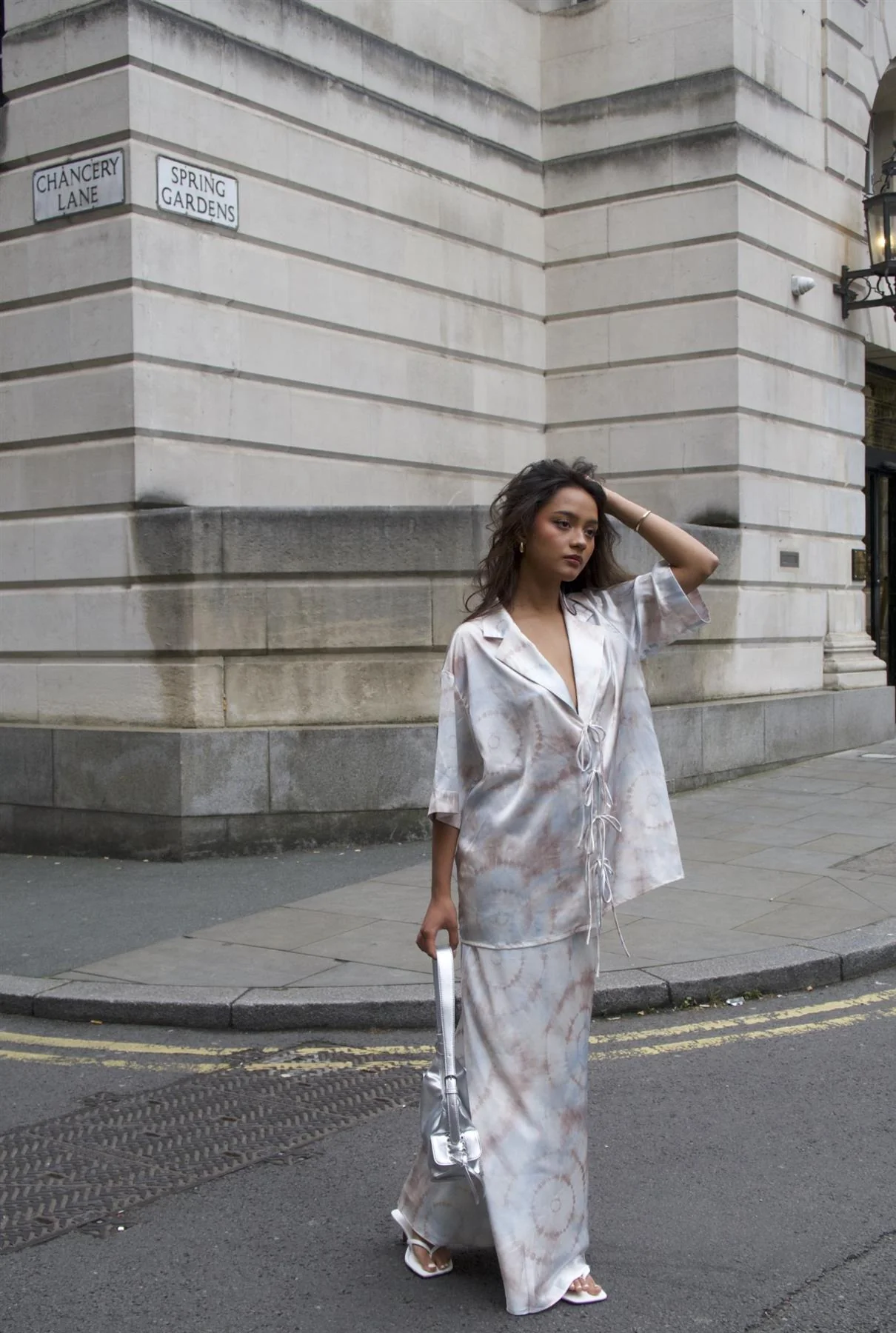 Beige-Grey-Watercolour Bias-Cut-Maxi-Skirt