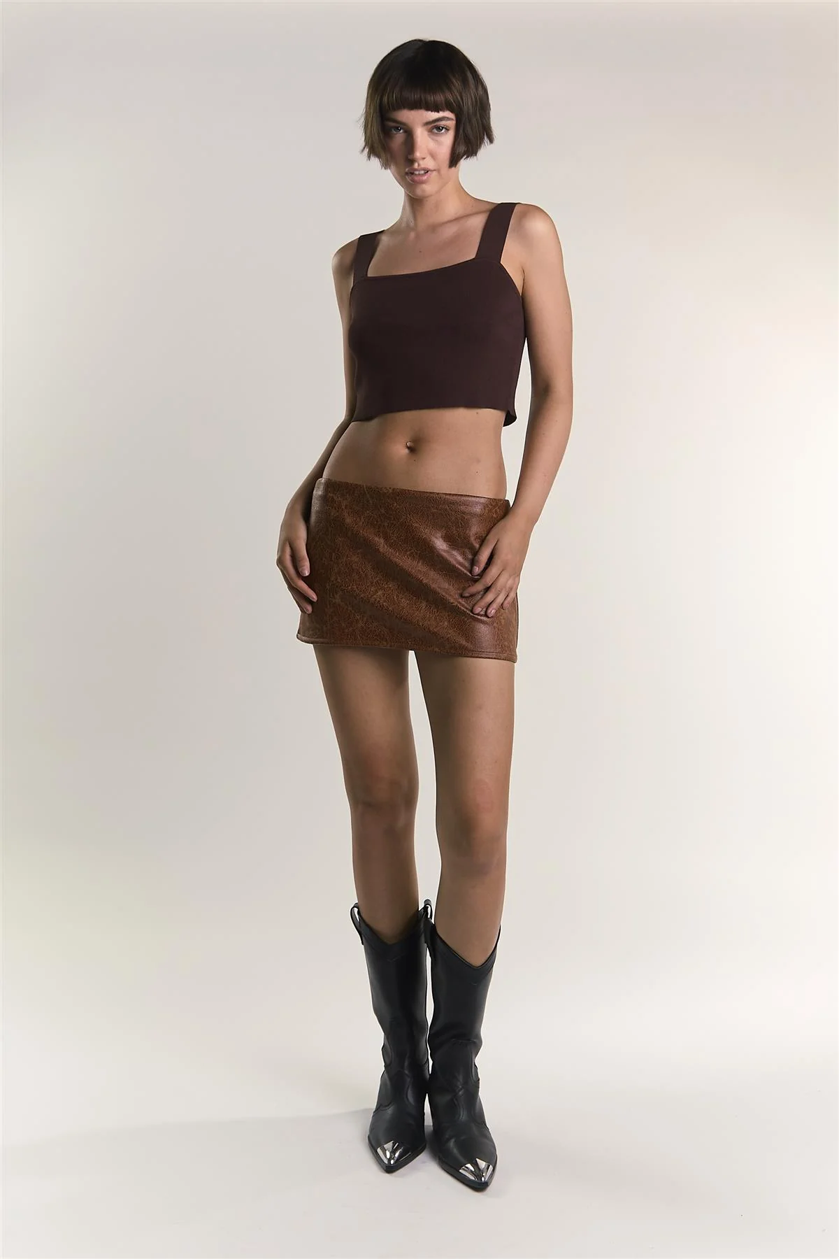 Chocolate-Brown Square-Neck-Top