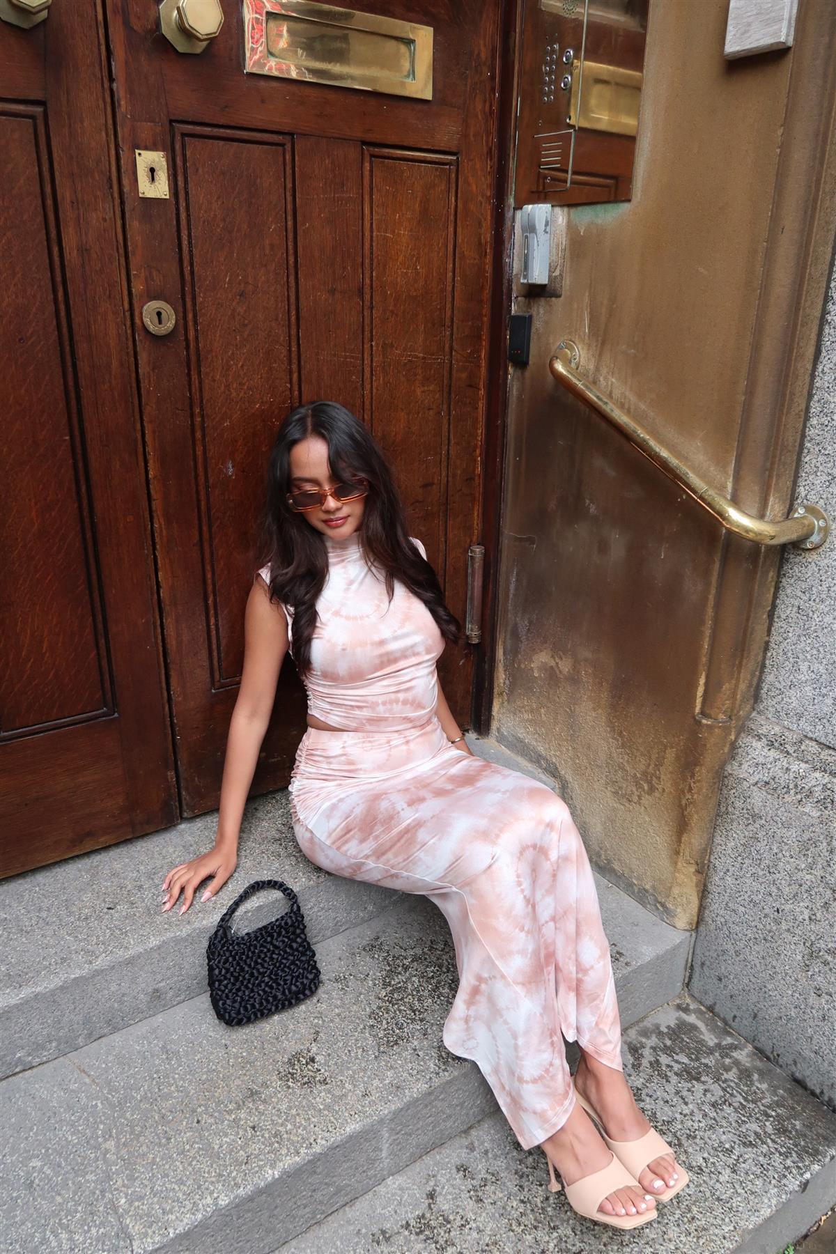 Sepia Tie Dye Sleeveless Crop-Vest Top