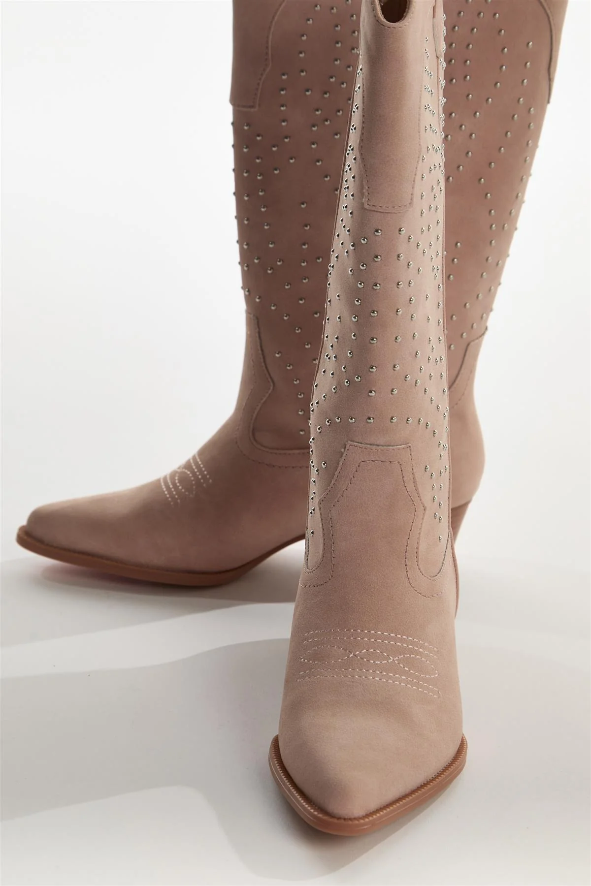 Baby-Pink Studded Cowboy Knee-High-Boots