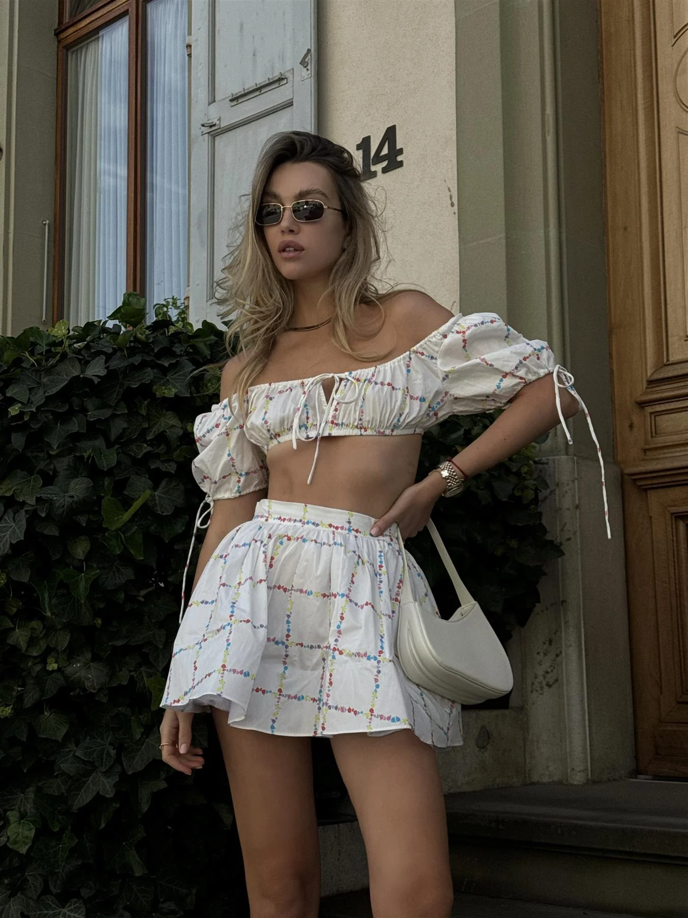 Grid Picnic Floral Square-Neck Crop-Top