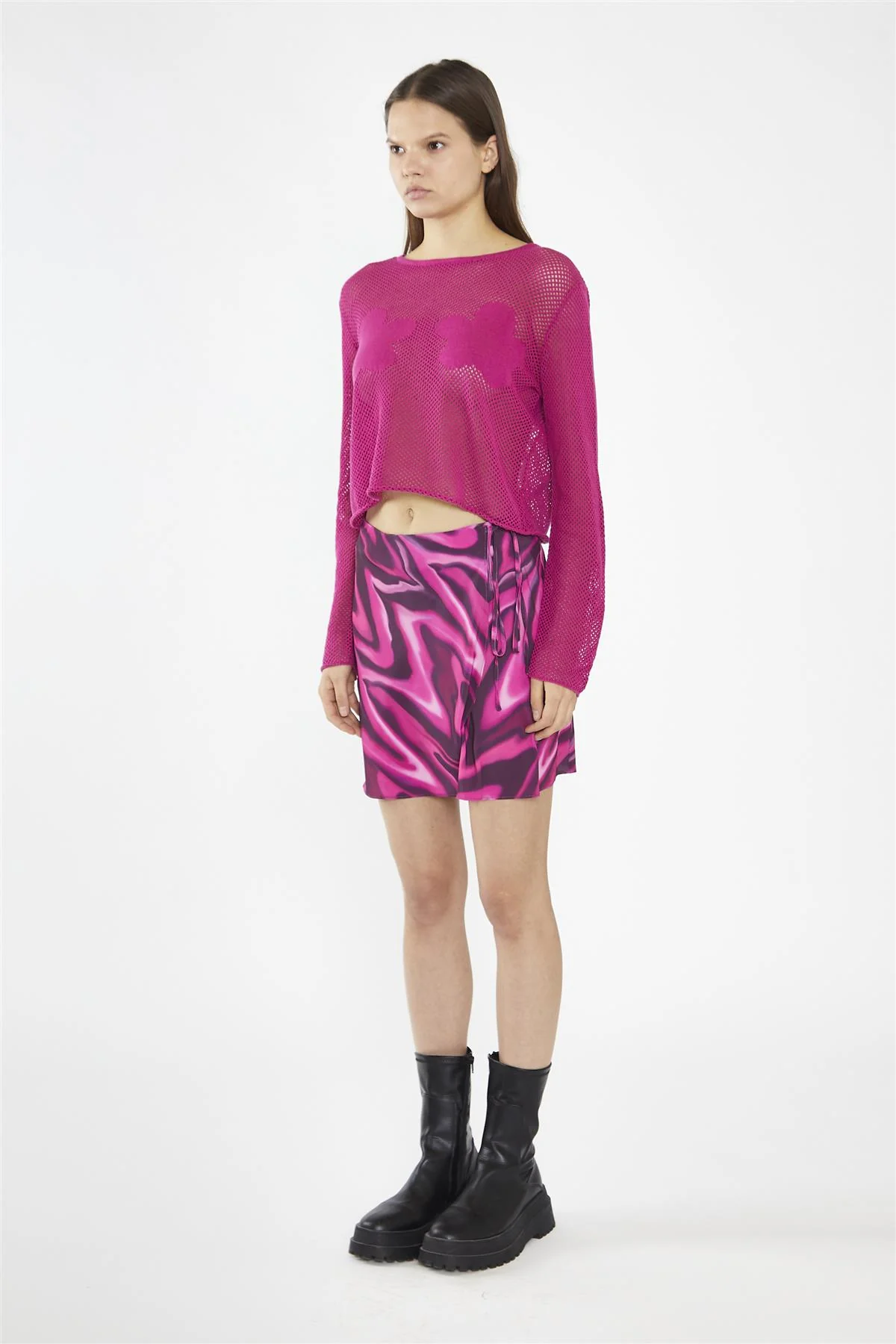 Pink Multi-Blurred Wave Wrap Mini-Skirt