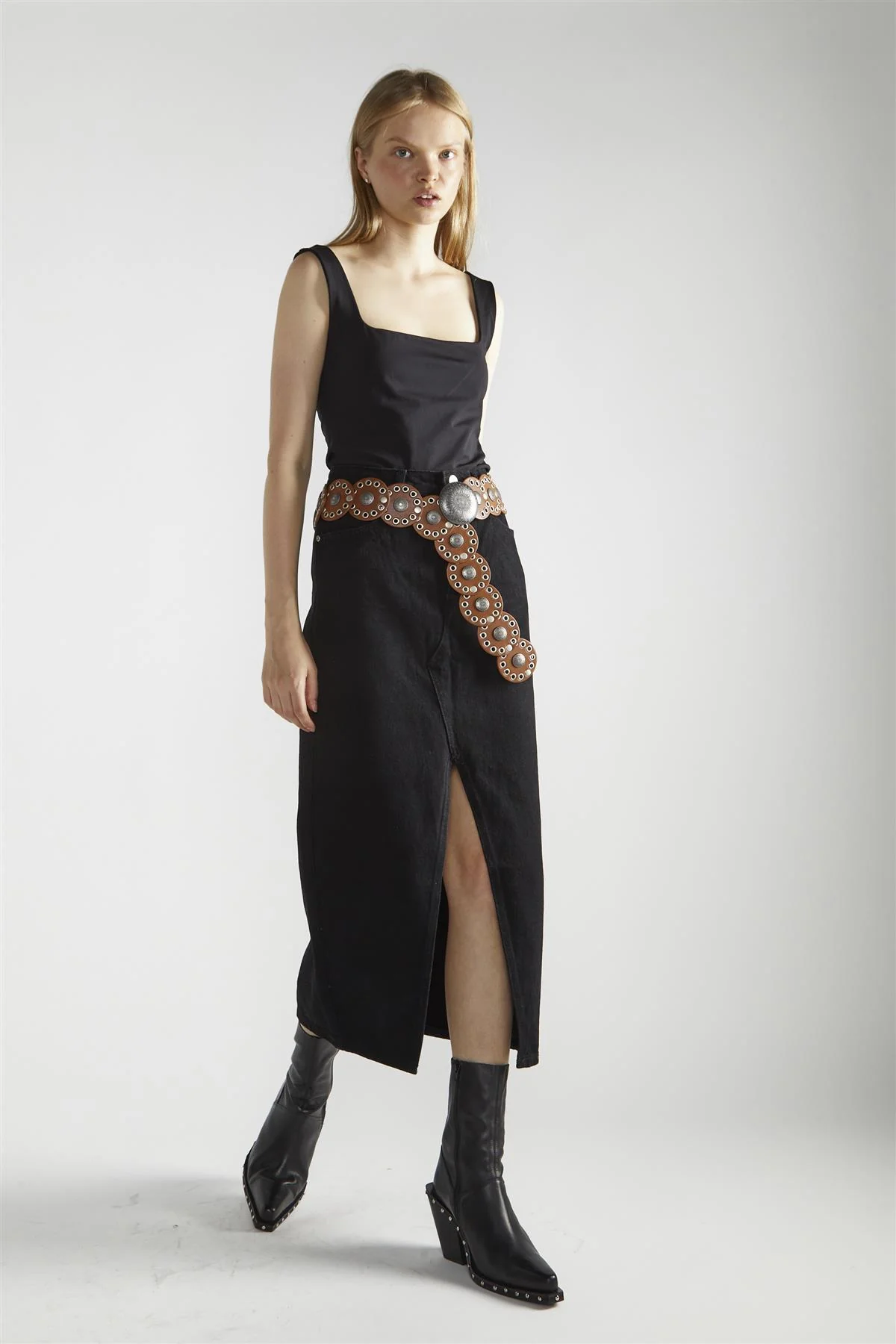 Light Stonewash Denim Fishtail Maxi-Skirt